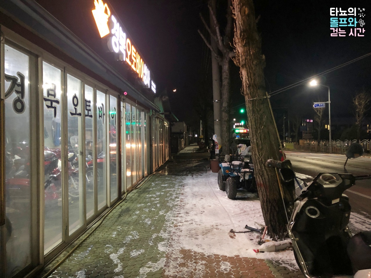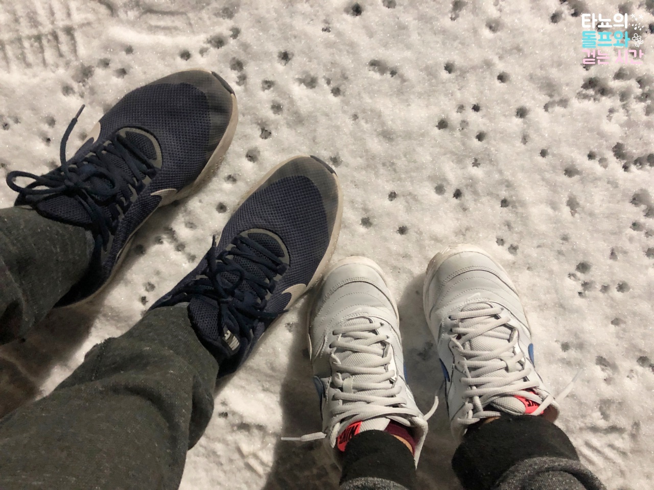 눈이 많이 녹아서 눈 쌓인 곳만 찾아다니면서 걸었던 것 같네요. 꽁꽁 얼어서 미끄러운 곳도 있었는데 신랑이 잘 잡아줘서 탈없이 잘 돌아다녔습니다. 캄캄한 밤거리를 걸으니 나름대로 낭만도 있었는데요. 볼이 터질듯 스치는 매서운 바람에 금세 집으로 돌아갔습니다. 와, 한국의 겨울은 정말 춥네요. 더 추워진 것 같았어요.