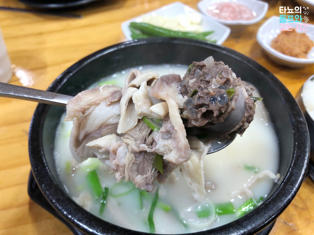 먹고 싶었던 국밥은 3가지인데 3그릇을 모두 먹을 수는 없으니 모듬국밥을 주문했습니다. 내장, 돼지고기, 순대가 골고루 들어간 국밥은 제 입맛에 안성맞춤이었어요. 따뜻하고 고소한 국물에 밥 말아서 함께 먹으니 얼마나 맛이 좋던지요. 꿀맛도 이런 꿀맛이 없었답니다. 한국에 머무는 동안 100그릇도 먹을 수 있을 것이라 생각했었는데, 생각보다 많이 먹고 오질 못했어요. 5번도 채 먹지 못했던 국밥이 지금도 눈에 선하고 마음에 밟히네요. 아, 또 먹고 싶어요.