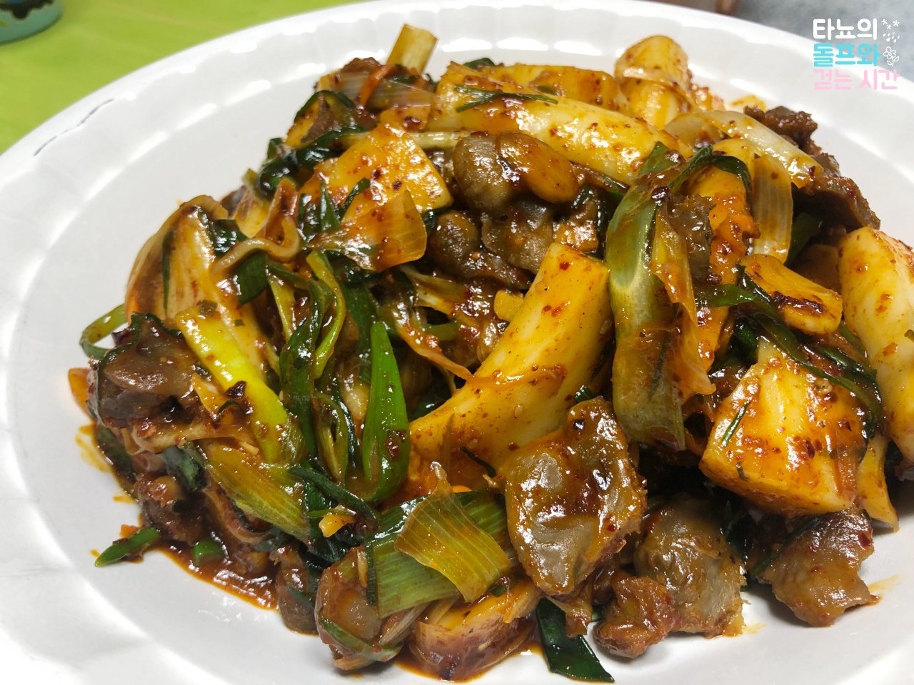 이미 배가 터질듯 불렀지만, 야식을 준비했습니다. 밤거리를 배회하다가 편의점에서 판매하는 냉동 똥집을 발견했거든요. 매운 양념을 만들어서 야채를 듬뿍 넣어서 볶았죠. 사실 한국에서 지냈던 6주 동안 거의 하루에 4끼를 먹었던 것 같아요. 아침, 점심, 저녁, 야식을 언제나 쉬지 않고 먹었었는데요. 아무래도 [ 이제 며칠 뒤면 떠나는데.. 언니와(가족들과) 야식 먹는 시간도 이제 못 가질 텐데...]라는 아쉬움이 매일 있다 보니 매일매일 더 열심히 야식을 먹었던 것 같아요. 그리고 저희는 아주 포동포동하게 살이 쪘습니다.