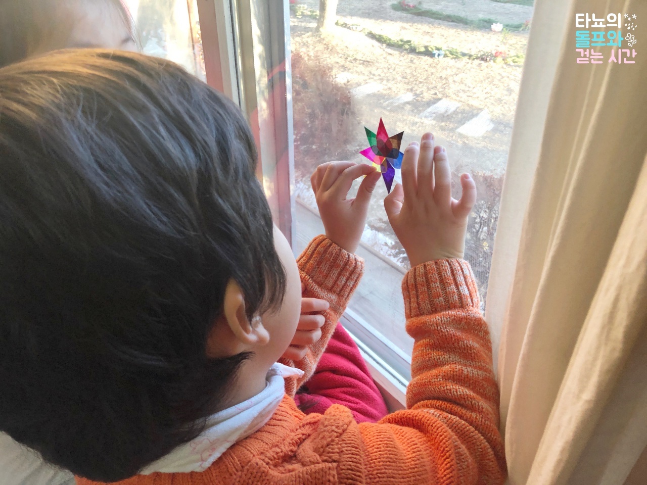 ▲ 첫째 조카녀석이 유리창에 자신의 별을 자랑스럽게 붙이고 있습니다. 딱풀로 슥슥 발라서 붙였는데 이 별의 용도를 물어보니 창문을 통해 들어오는 햇빛을 이 별이 흡수해준다고 해요. 어떤 원리인지는 아마 이 종이의 재질 속에 답이 있겠죠? 하여튼 아이들에게 향할 해로운 자외선은 모두 이 별로 가버리길!