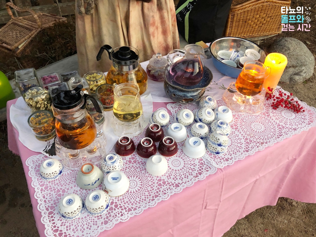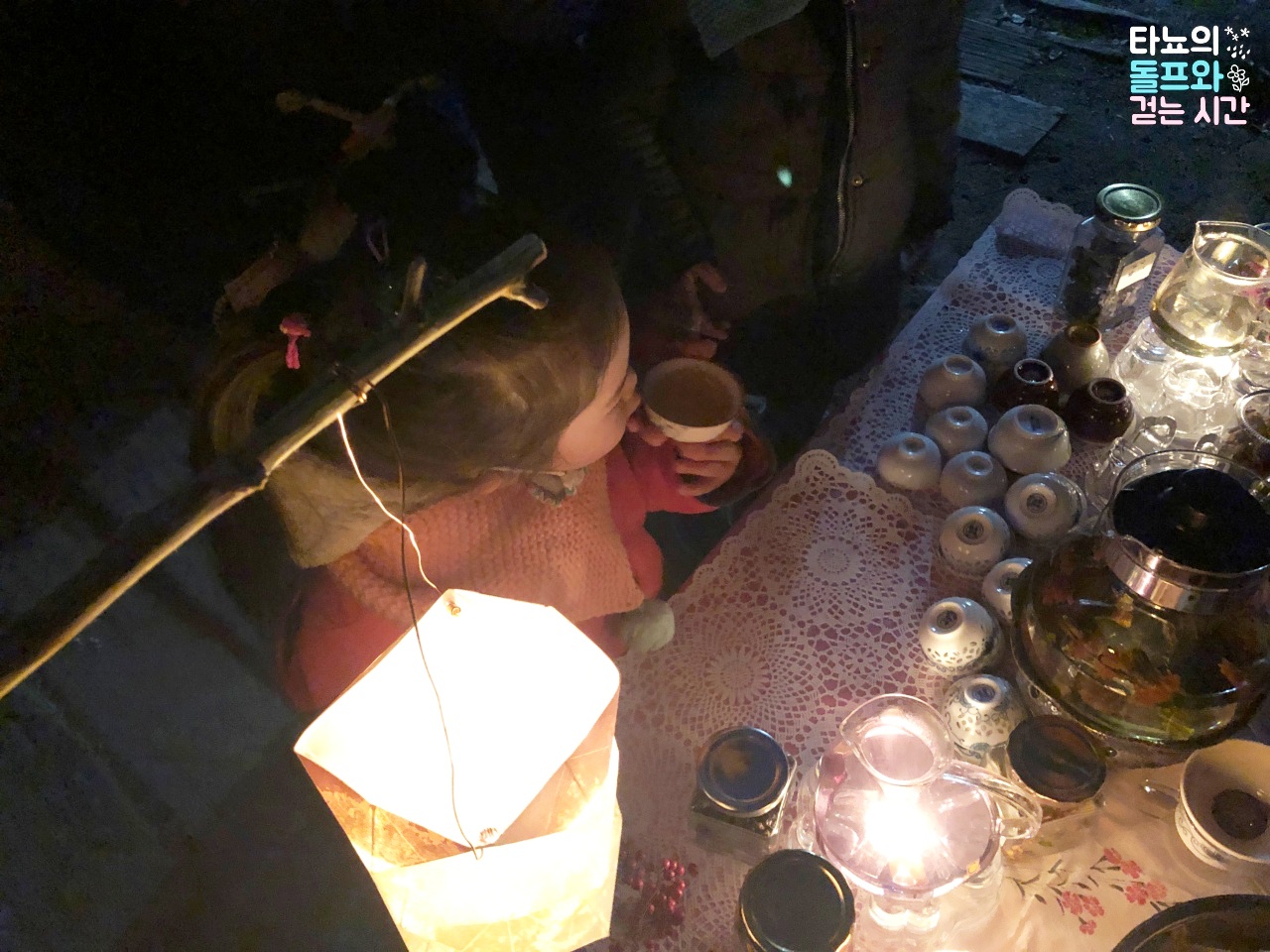 ▲ 해가 떨어지자 더 추워지기 시작했는데 우리 둘째녀석이 차를 한 잔 하네요. 꽃 차를 즐기는 아이들이라니 참 예뻐요.
