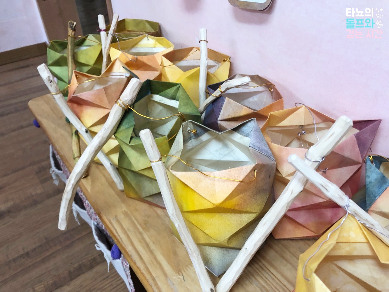 ▲ 이건 이따가 해가 떨어지고 어둠이 내리면 아이들이 직접 들고 다닐 등불이에요. 종이로 만들고 손잡이는 나무를 깎아서 만들었는데 안에는 초가 들어 있어서 불을 밝힐 수 있답니다. 이런 것도 모두 선생님들이 직접 만든다고 하는데요. 종이가 참 빳빳한게 신기해서 물어보니 여러 번 풀을 먹여서 가능하다고 했어요. 보기에도 참 예쁘고 아이들의 손이 닿는 곳에 플라스틱이 없도록 노력하는 이 곳의 정성이 보였어요.