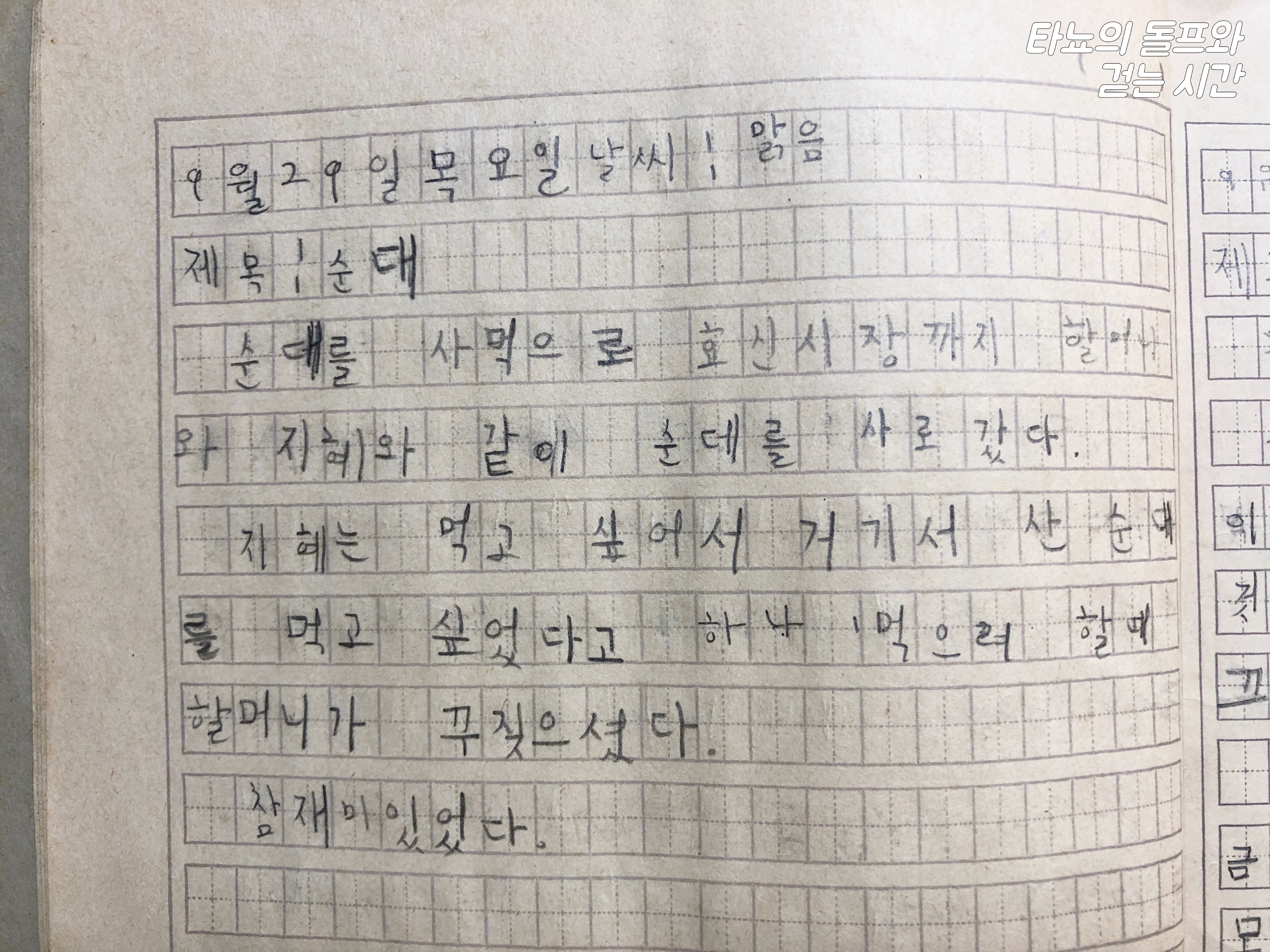 ▲ 그 와중에 책장에서 오빠의 오래된 일기장을 발견했어요. 아마 오빠가 초등학생 때 썼던 일기 같아요. 순대에 얽힌 이야기인데 제가 할머니에게 혼나는 것을 보면서 참 재미있었다고 적어놓은 오빠를 보니 참... 어이가 없었답니다 ^^;;