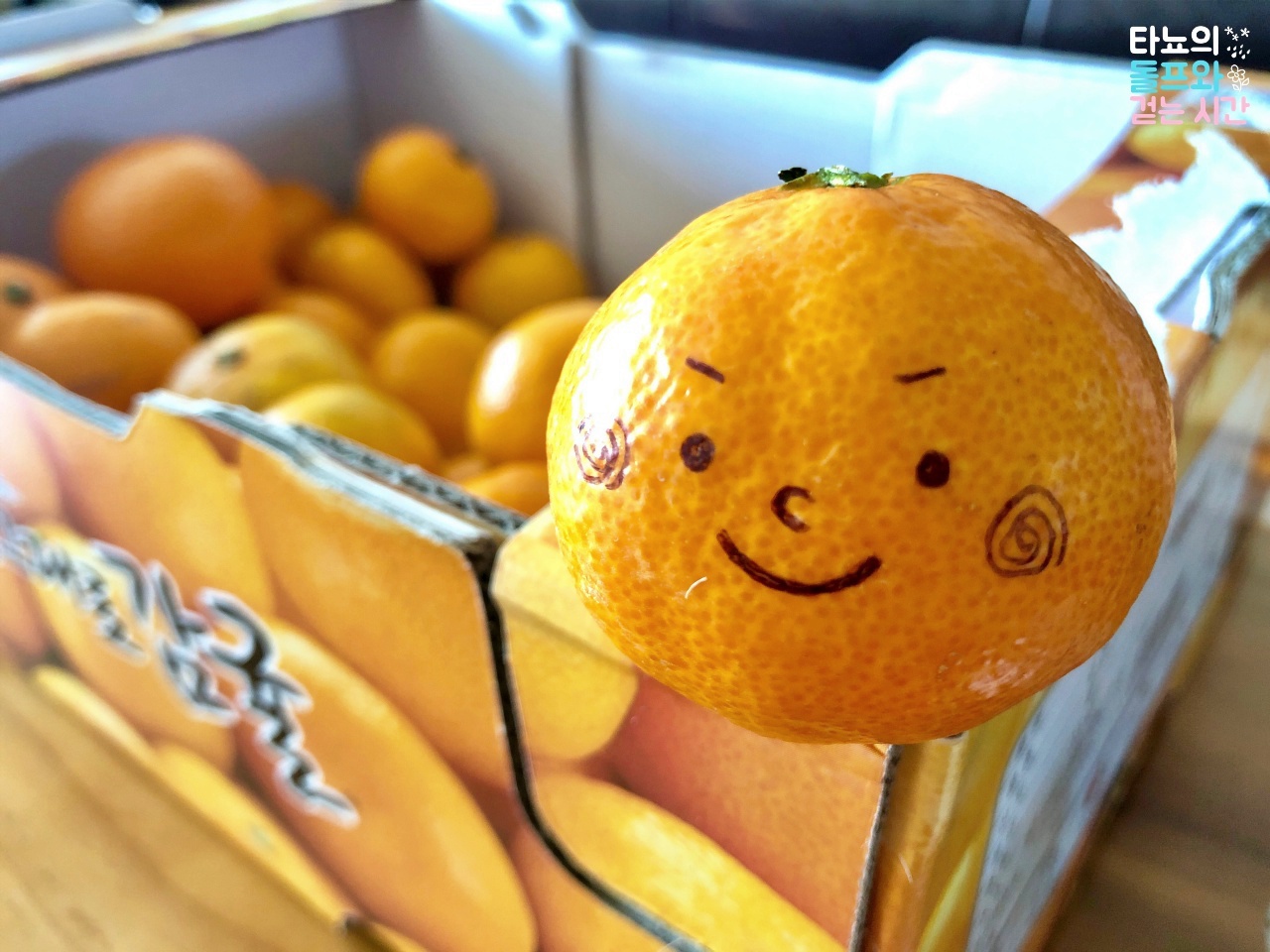 ▲ 귤에 장난을 좀 쳐서 아버님께 드렸어요. 아버님이 [ 우리 새아기, 귤 먹어라~ ] 그러시면서 하나 주시길래 제가 볼펜으로 슥슥 장날을 쳐서 다시 드렸지요. [ 아버님~ 이거 보세요! 짠~ ] 했더니 아버님이 [ 이건 안 먹고 보관해야겠다! ] 그러시면서 선반에 얹어두셨답니다. 아마 나중에라도 드셨을 것이라 생각되네요 ^^