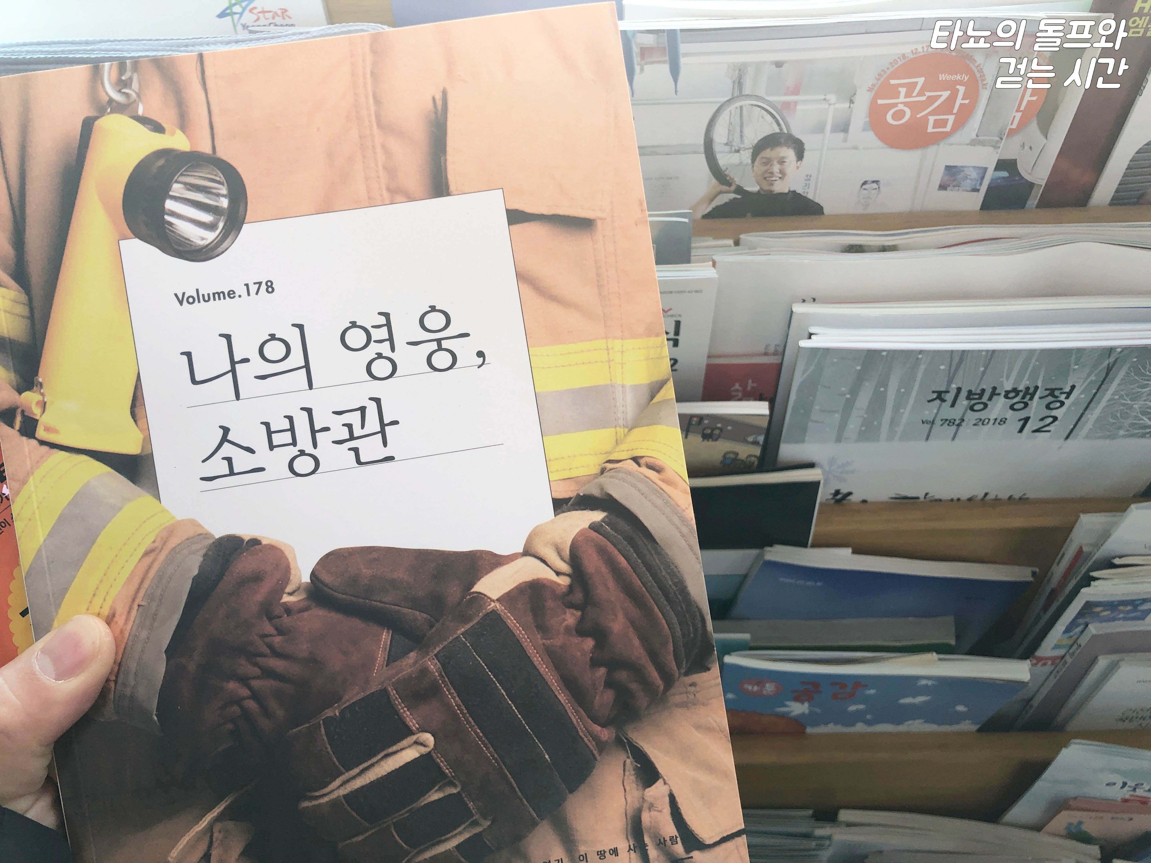 ▲ 서류를 떼기 위해 잠시 들렀던 동사무소에서 '나의 영웅, 소방관'이라는 책을 발견했어요. 오빠가 소방관인 제게는 이런 것들이 늘 눈에 띄는 것 같아요. 언제나 물속으로, 불 속으로 자신의 몸을 아끼지 않고 뛰어드는 오빠를 생각하며 기도한답니다. 물이 오빠를 침몰시키지 않도록, 불이 오빠의 털끝도 사르지 않도록 지켜달라고.