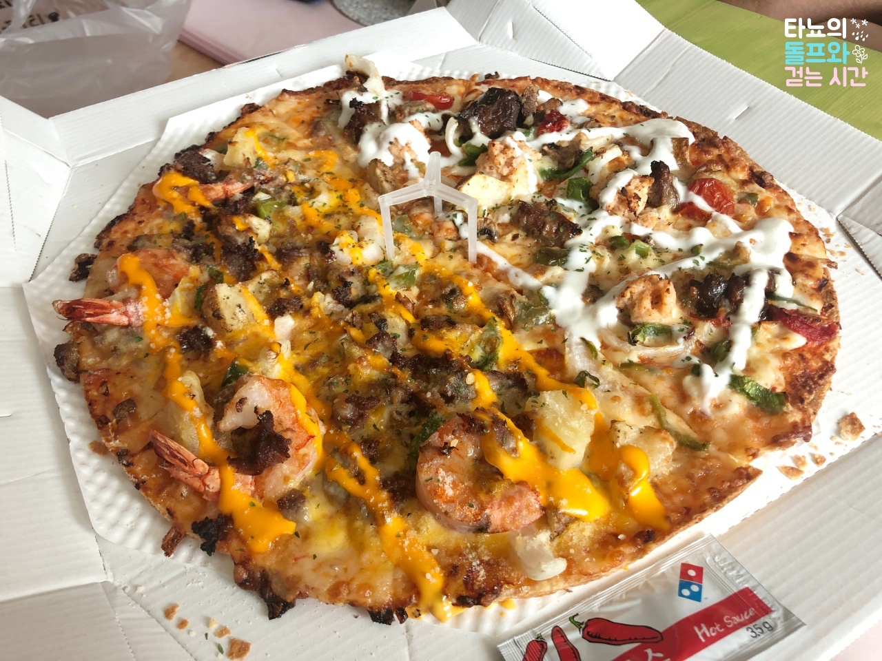 ▲ 언니와 함께 점심으로 시켜먹은 도미노 피자에요. 뉴질랜드에도 도미노는 동일하게 있지만 메뉴는 아주 많이 다르답니다. 아마 한국 도미노처럼 토핑이 올라가는 곳은 전 세계에 하나도 없을 거예요.
