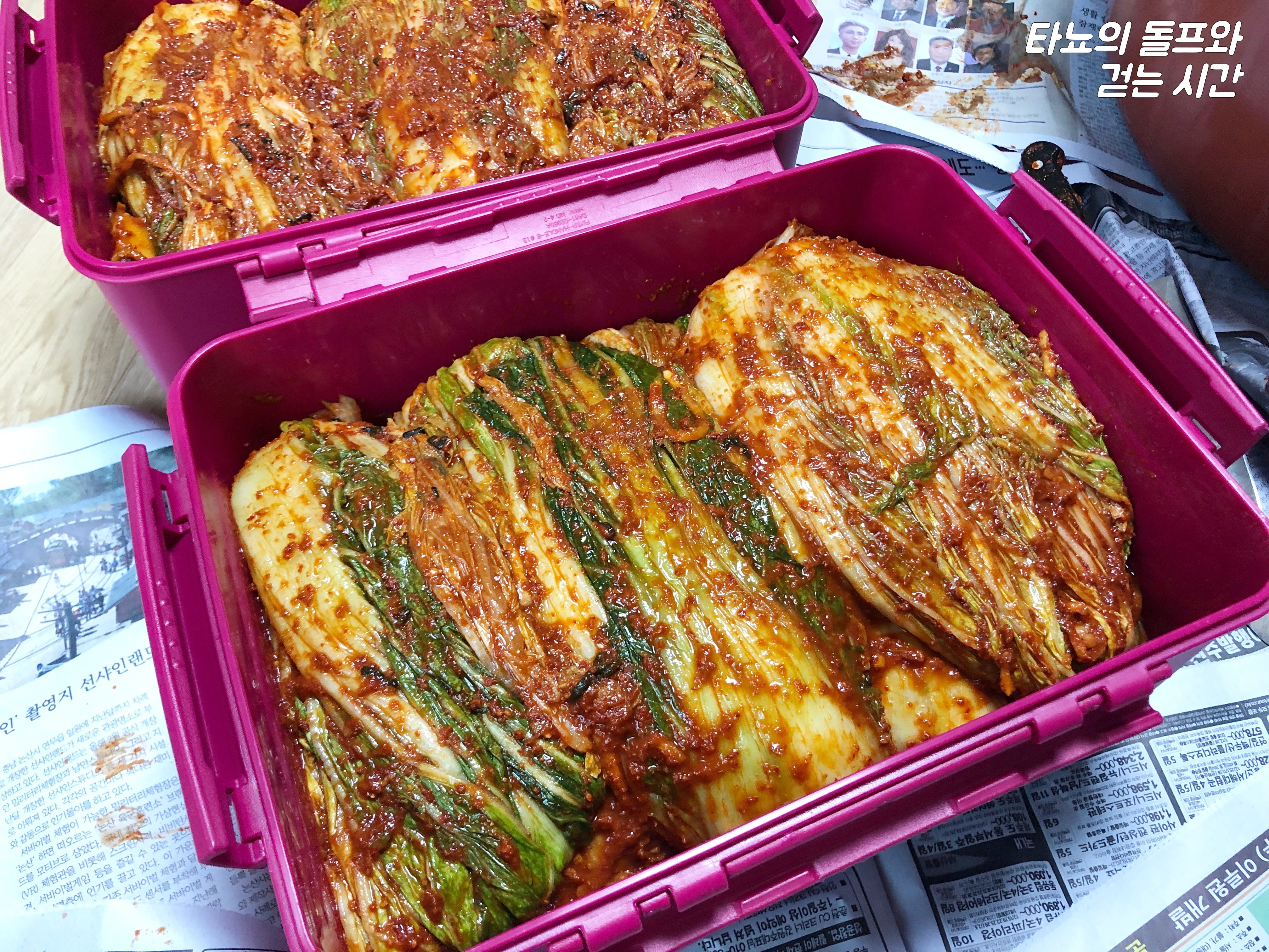 ▲ 4명이 손을 모으니 김장이 빨리 끝났어요. 엄마 김치통, 언니 김치통, 오빠네 김치통 모두 모아서 김치를 가득 넣었습니다. 저도 한 통 들고 가고 싶은 마음이 굴뚝같았지만 어쩌겠어요 ^^;; 뉴질랜드 가면 제 김치는 제가 담아야죠. 에휴, 엄마 김치가 참 좋은데 말이죠.