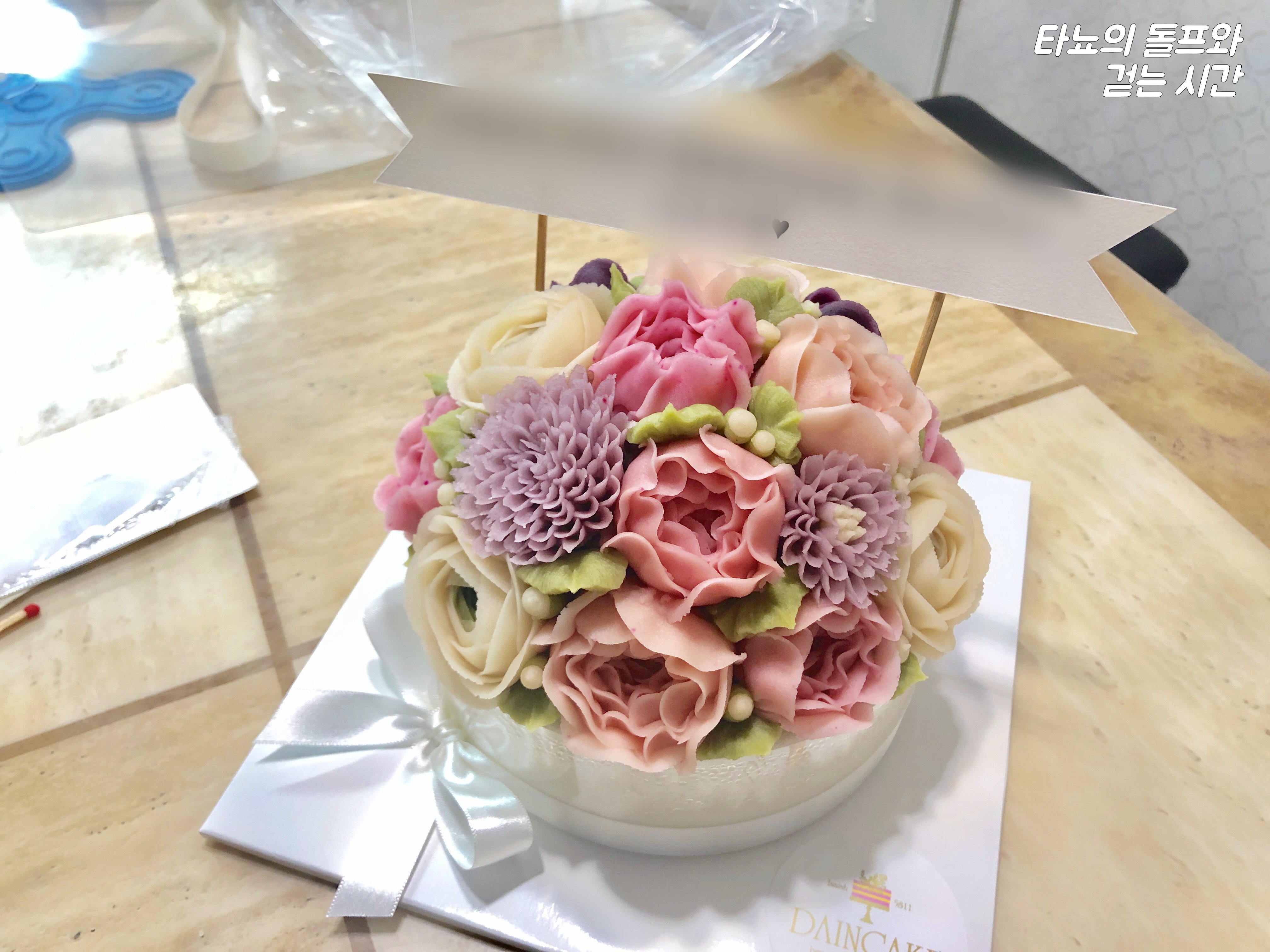 저는 시어머니의 특별한 날에 맞춰서 다인 케이크에 미리 주문을 했었어요. 어머니께서 떡케이크를 받으시며 너무 좋아하셨던게 아직도 눈에 선해요. 앙금 떡케이크는 기존의 케이크보다 어른들의 입맛에 더 잘 맞기도 하고 개인적으로 더 예쁜 것 같기도 해요. 앙금으로 저렇게 아름다운 꽃을 만든다는 것이 참 놀라웠죠. 만약 뉴질랜드에도 이런 상점이 있었다면 제가 아마 단골 했을 것 같아요.