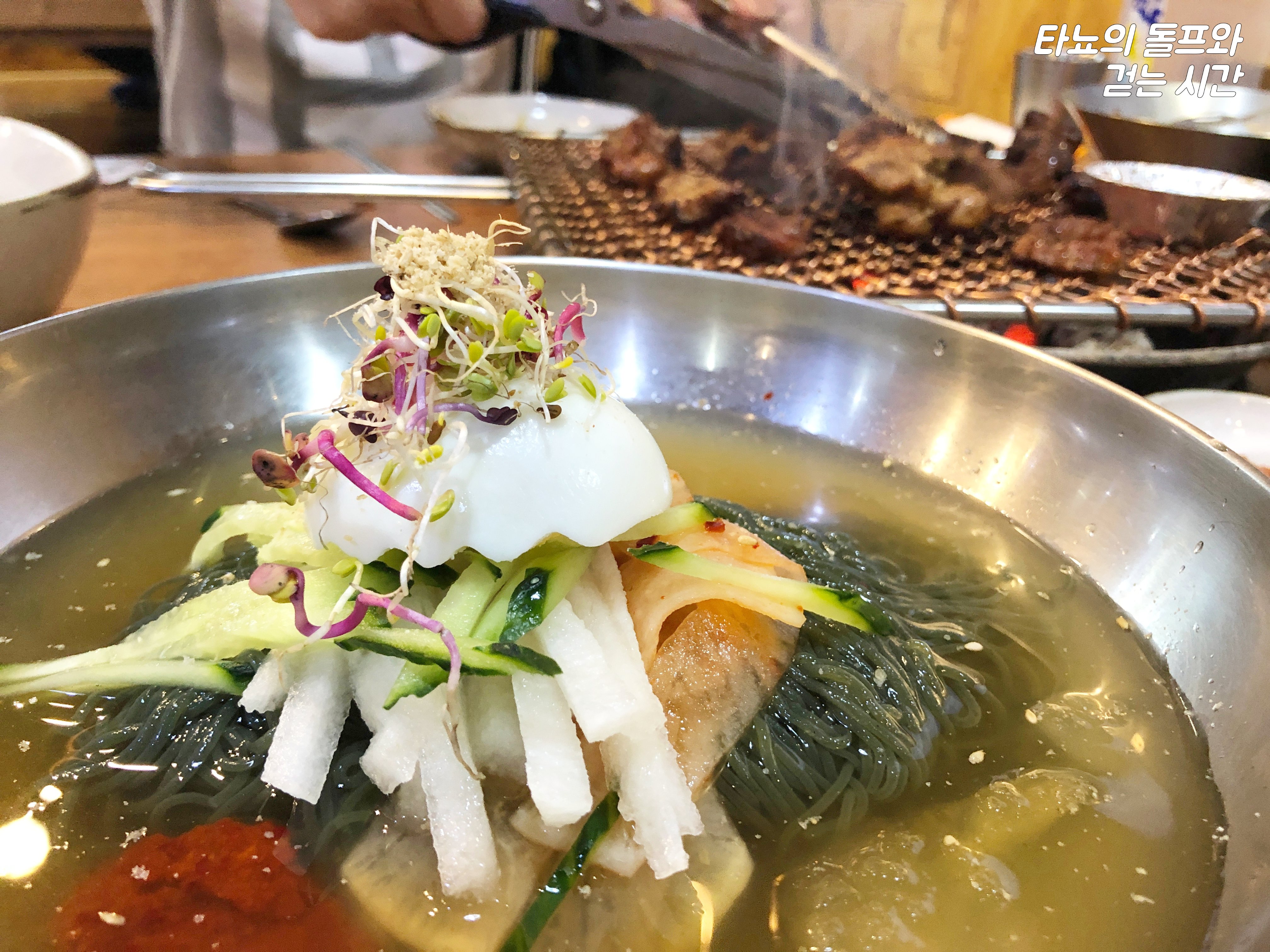 ▲ 일월산 생고기 직화구이집에 가서 오랜만에 꿈에 그리던 갈비를 든든하게 먹었습니다. 일월산은 다양하고 맛있는 반찬도 맛있지만 매력적인 불판과 진한 소스가 베인 갈비, 함께 먹는 냉면이 참 맛있는 곳이에요. 가격이 조금 있긴 하지만 그래도 여러 번 갈 만큼 좋아요. 냉면에 갈비 싸 먹으면 정말 맛있는 거 다들 아시죠?