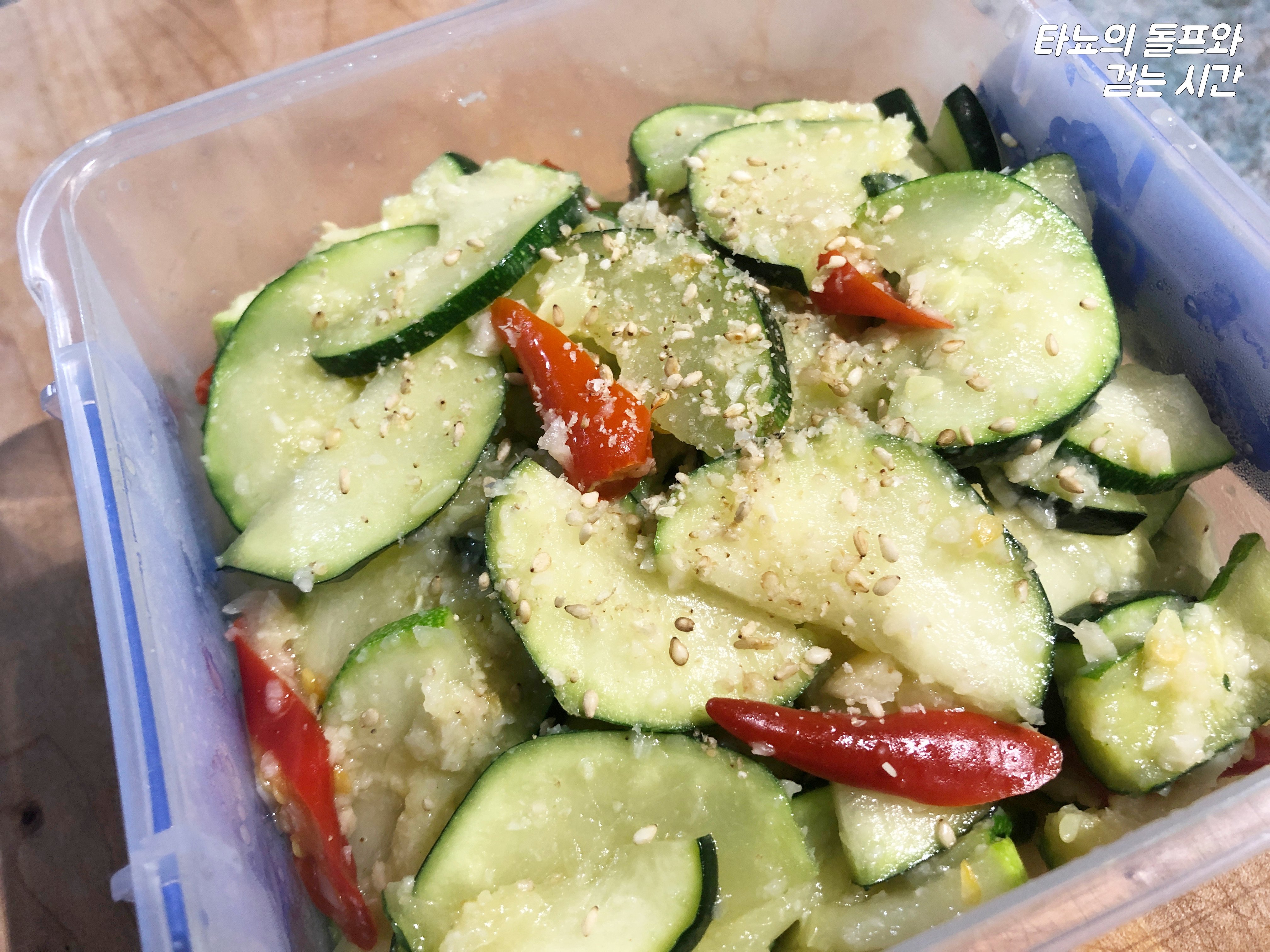 ▲ 매콤한 홍고추가 들어가서 더 맛있는 것 같아요. 깨소금까지 솔솔 뿌려서 보관했습니다. 이렇게 한 통 가득 만들어두면 냉장고가 참 든든해지죠. 밥 먹을 때 반찬 걱정이 없어지는 그런 메뉴입니다.