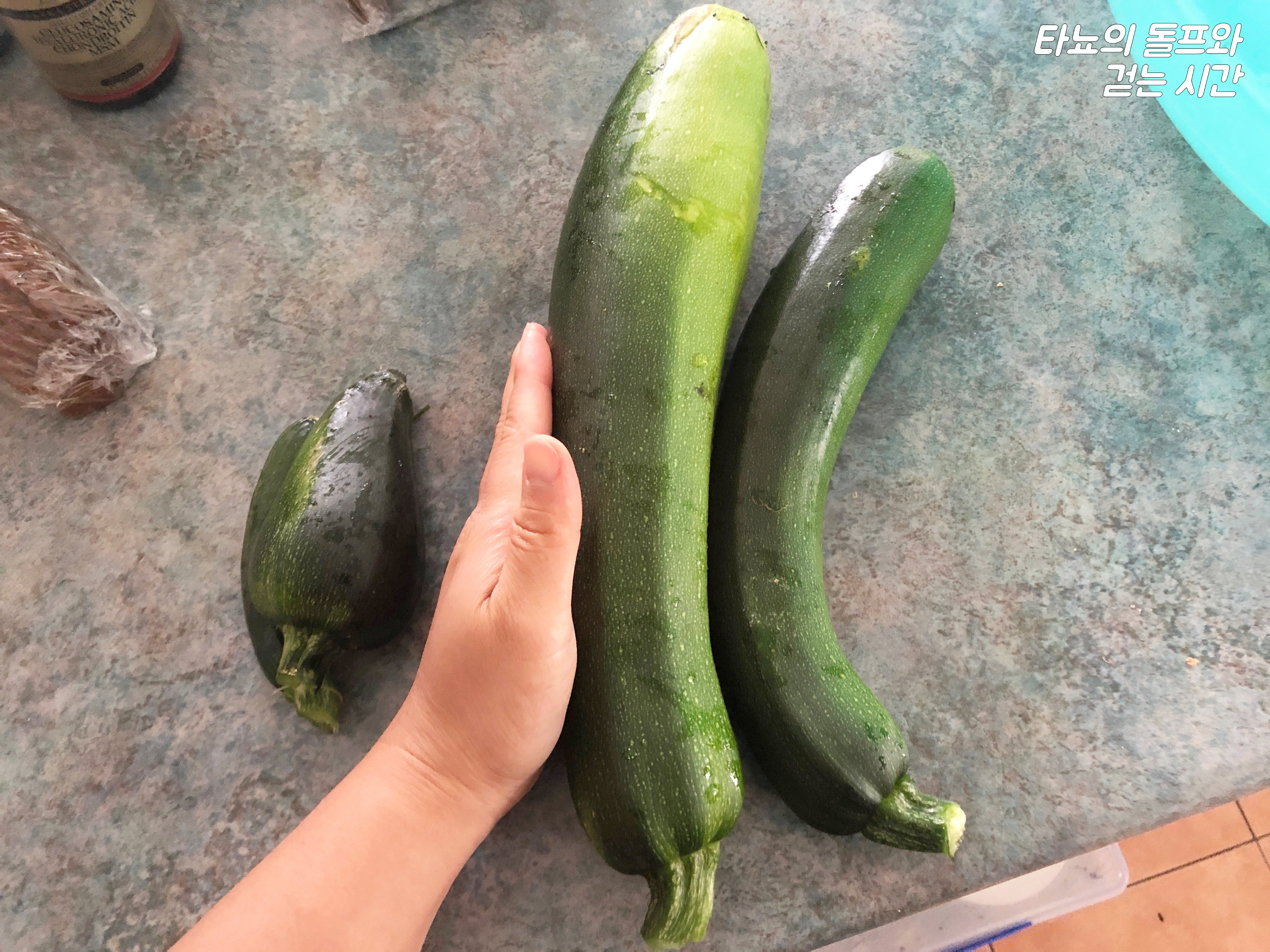 마당에서 굉장히 큰 호박을 땄어요. 제 시기에 심은 것이 아니라서 사실 이렇게 수확을 할 줄은 몰랐어요. 그냥 재미 삼아 한 번 싹이라도 틔워보자는 마음이 컸었죠. 햇살이 워낙 좋아서 그런지 시기를 놓쳤음에도 불구하고 커다란 호박을 몇 개 수확할 수 있었답니다. 한국에서는 보통 애호박을 먹는 편이라서 쥬키니 호박은 뉴질랜드에 와서 먹기 시작했던 것 같아요. 특히 호박 볶음 같은 경우에는 애호박으로만 할 수 있는 반찬인 줄 알았는데요. 쥬키니 호박으로 호박볶음 만들어도 굉장히 맛있더라고요.