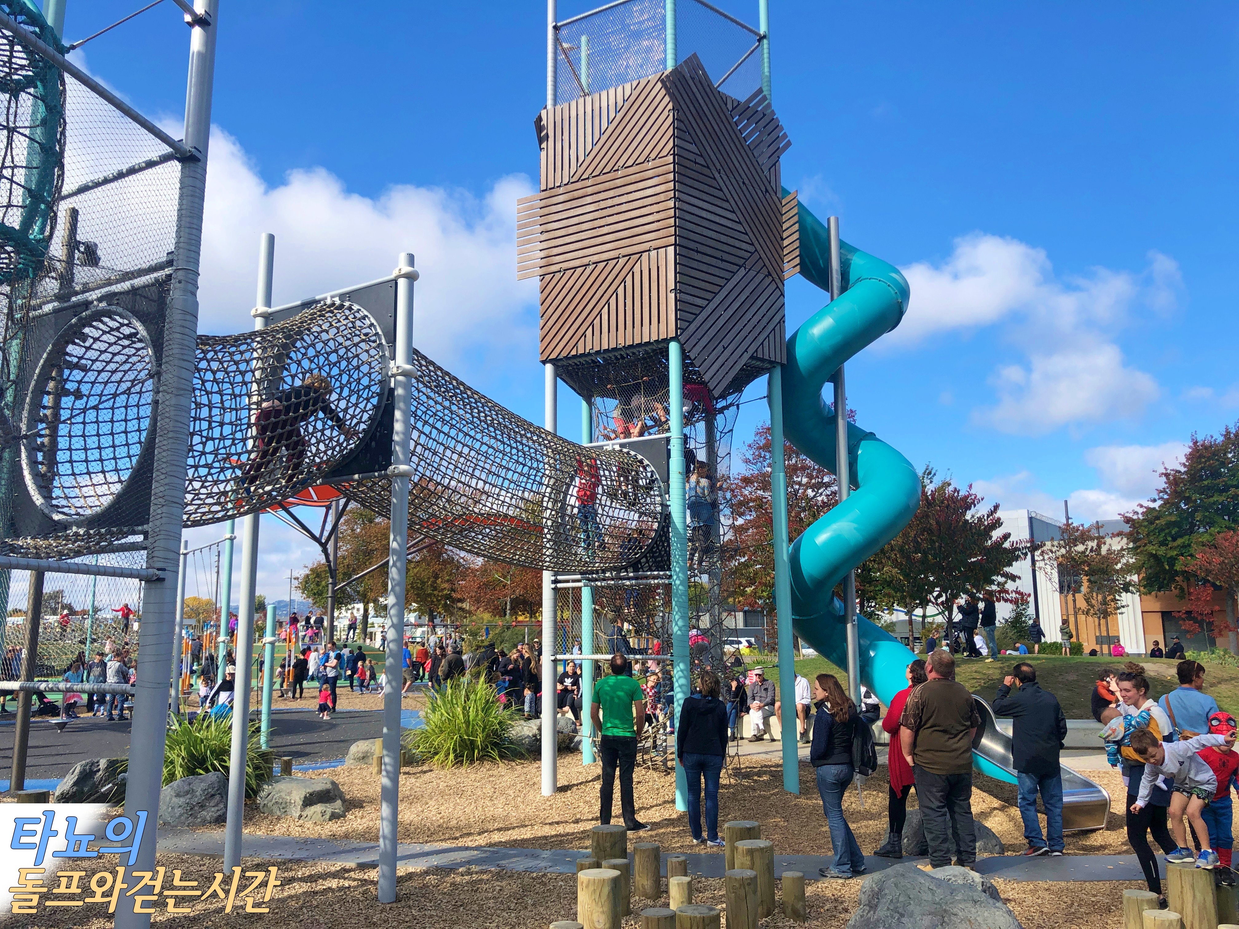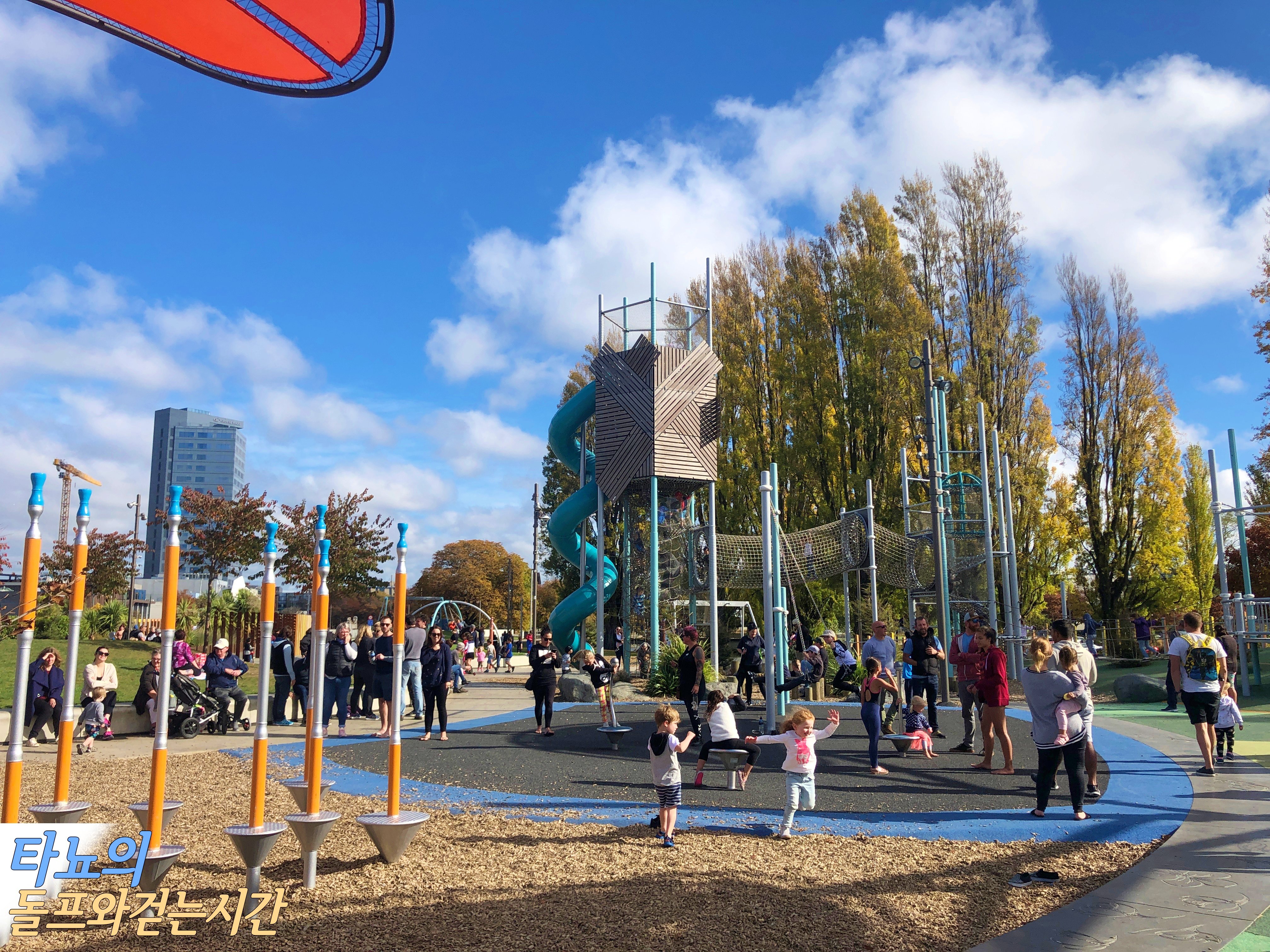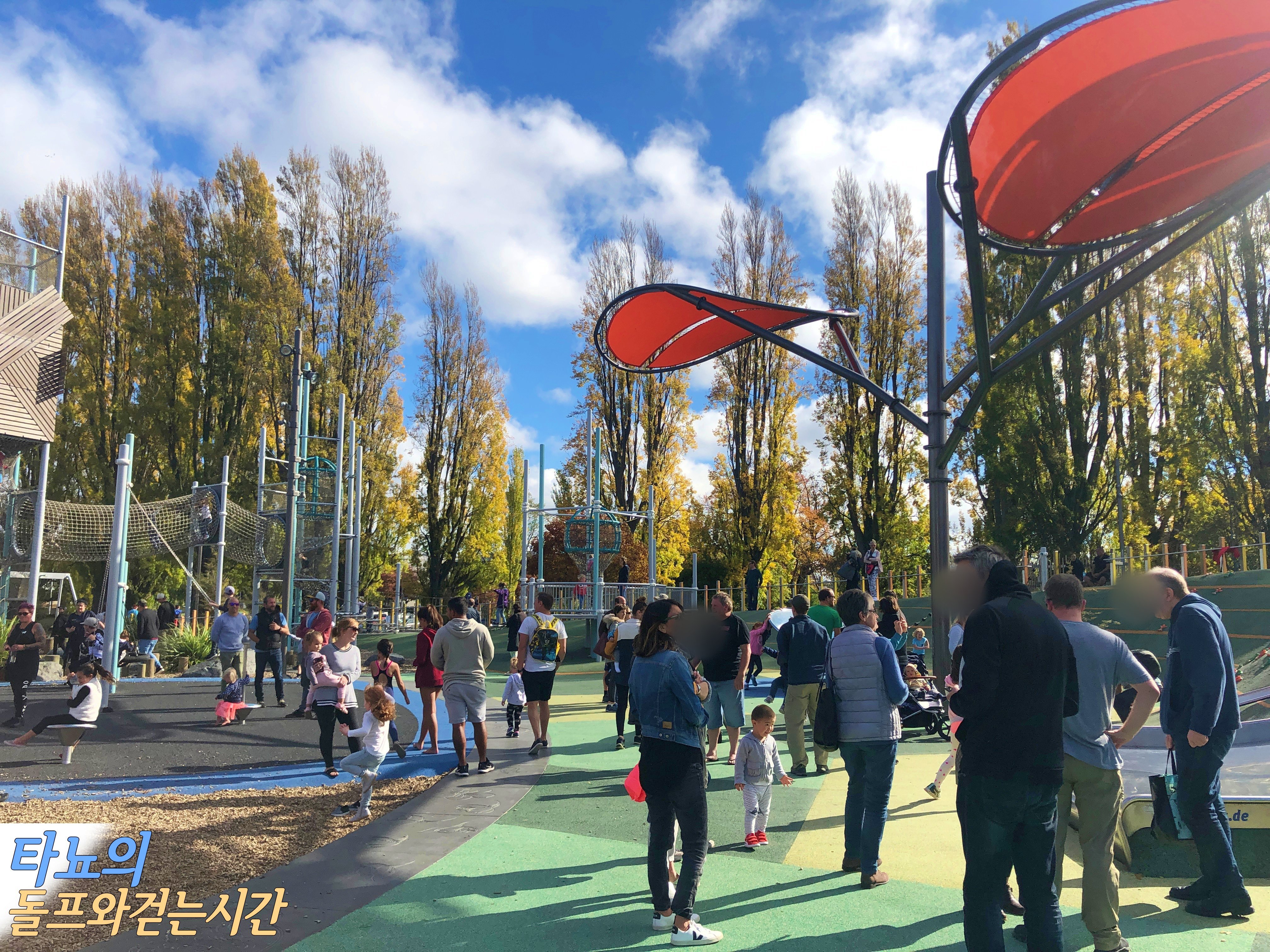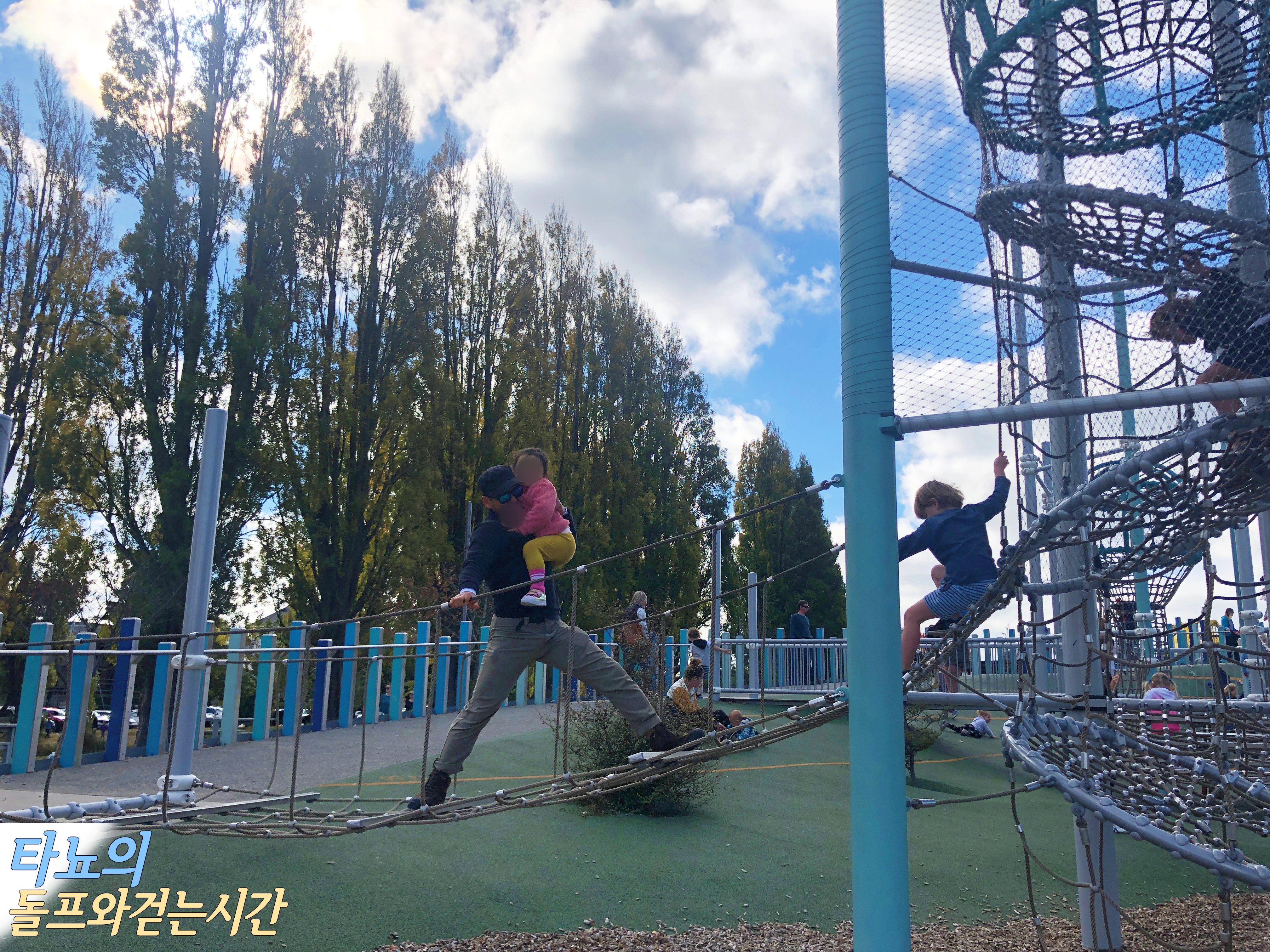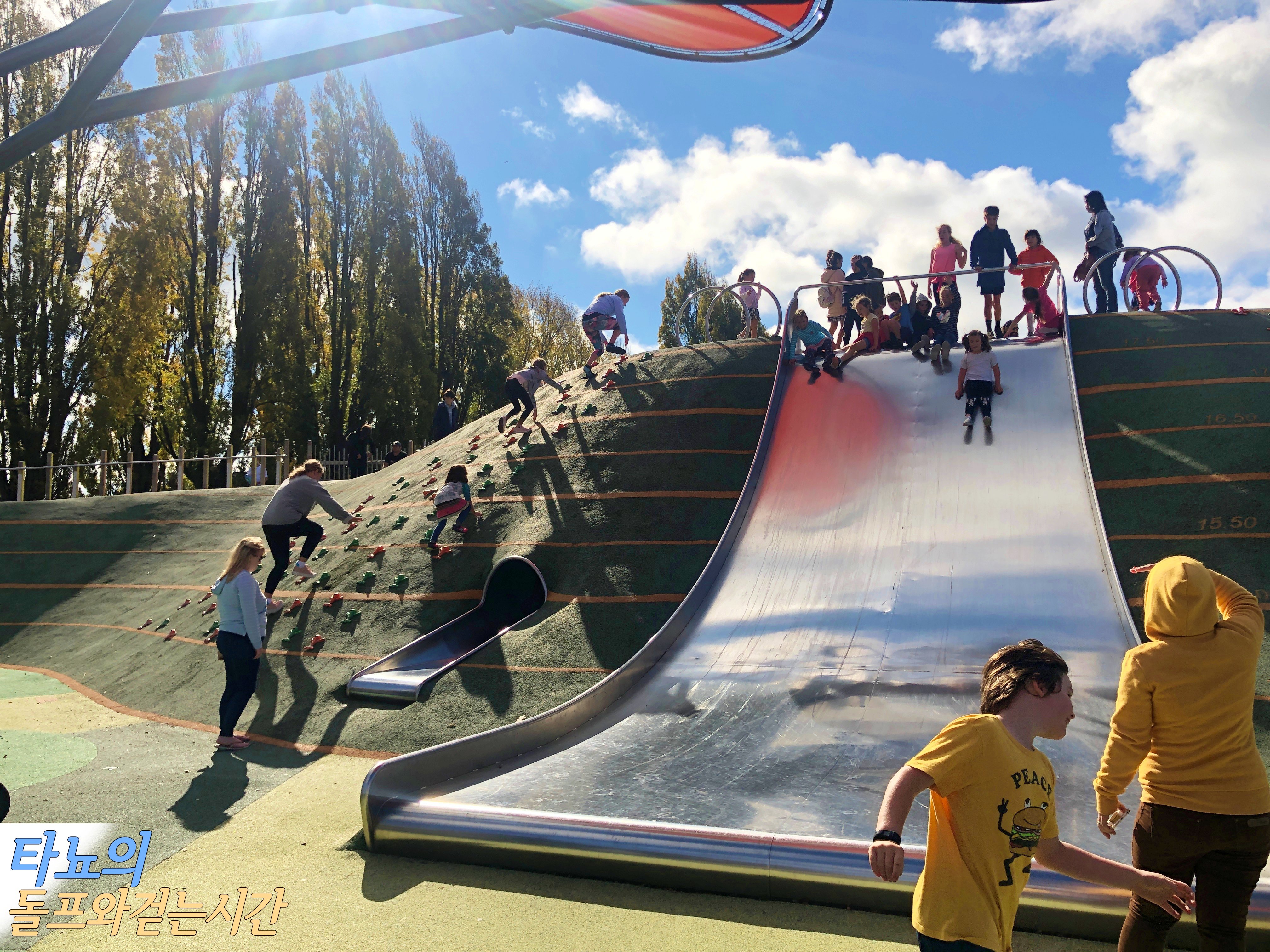 일단 먼저 맞은편에 위치한 '마가렛트 마히 놀이터'에 가서 놀았어요. 치치에서 가장 크고 시설이 좋은 놀이터로 유명한 이 곳은 적어도 만 5세는 돼야 놀만한 곳이에요. 그래서 저희 조카들이 놀만 한 건 거의 없었죠. 여름이면 수영장을 이용해도 되겠지만 지금은 추워서 무리였어요. 하지만 현지 아이들은 이 계절에도 물놀이를 하고 있더라고요 ^^;; 낮시간이었지만 아이들의 방학기간에 앤잭데이까지 겹쳐서 정말 사람이 많았답니다. 저희가 시티에 나온 날이 하필 국가 공휴일인 앤잭데이였어요.