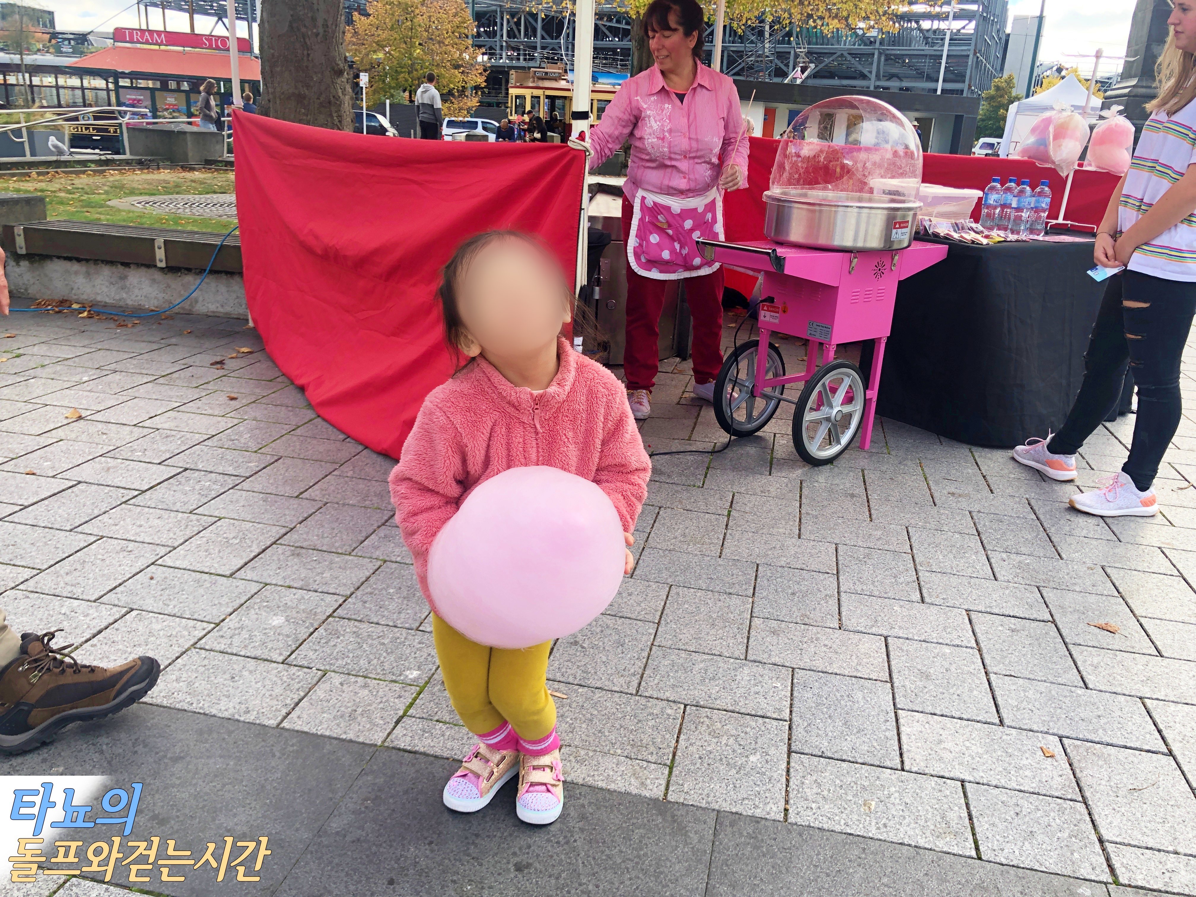 울먹울먹 컨디션이 좋지 않은 조카를 위해 고모가 솜사탕을 하나 샀습니다. 솜사탕 하나에 얼마나 좋아하는지요! 솜사탕 파는 아주머니에게 엉덩이를 흔들며 춤을 춰드렸어요.