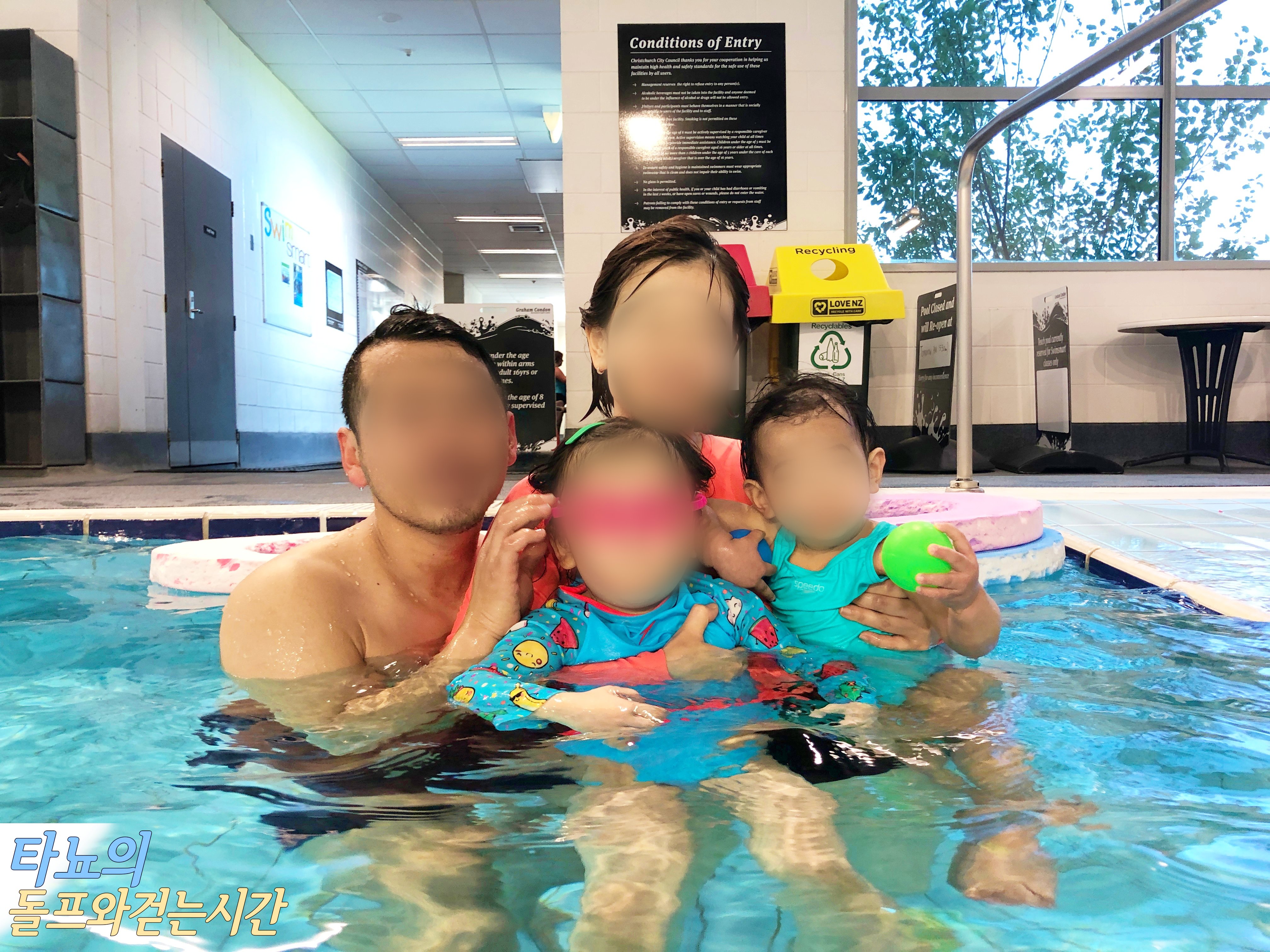 이 곳은 제가 아쿠아 조깅을 하러 매일 다니는 수영장인데 스포츠 풀은 물이 차갑지만, 어린이 풀은 물이 따뜻해요. 사우나 시설과 뜨끈한 물의 스파도 준비되어 있기 때문에 오빠와 새언니가 굉장히 좋아했었어요. 함께 보낸 모든 시간들이 참 즐겁고 따뜻했습니다.