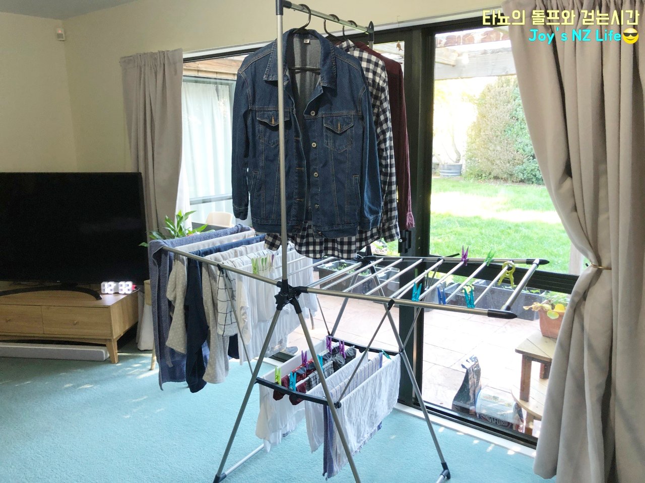 햇빛에 아주 바짝 마른 느낌이 참 좋았는데, 이제 우기인 겨울이 코앞이니 밖에서는 일주일이 지나도 빨래가 마르지 않을게 뻔하네요. 건조기를 사용하는 것도 좋지만 전기세가 워낙 비싼 뉴질랜드에서는 보통 히터를 트는 공간에 빨래를 널어서 자연스럽게 습도도 맞춰지고 빨래도 마르도록 한답니다. 나름대로 생활의 지혜죠?