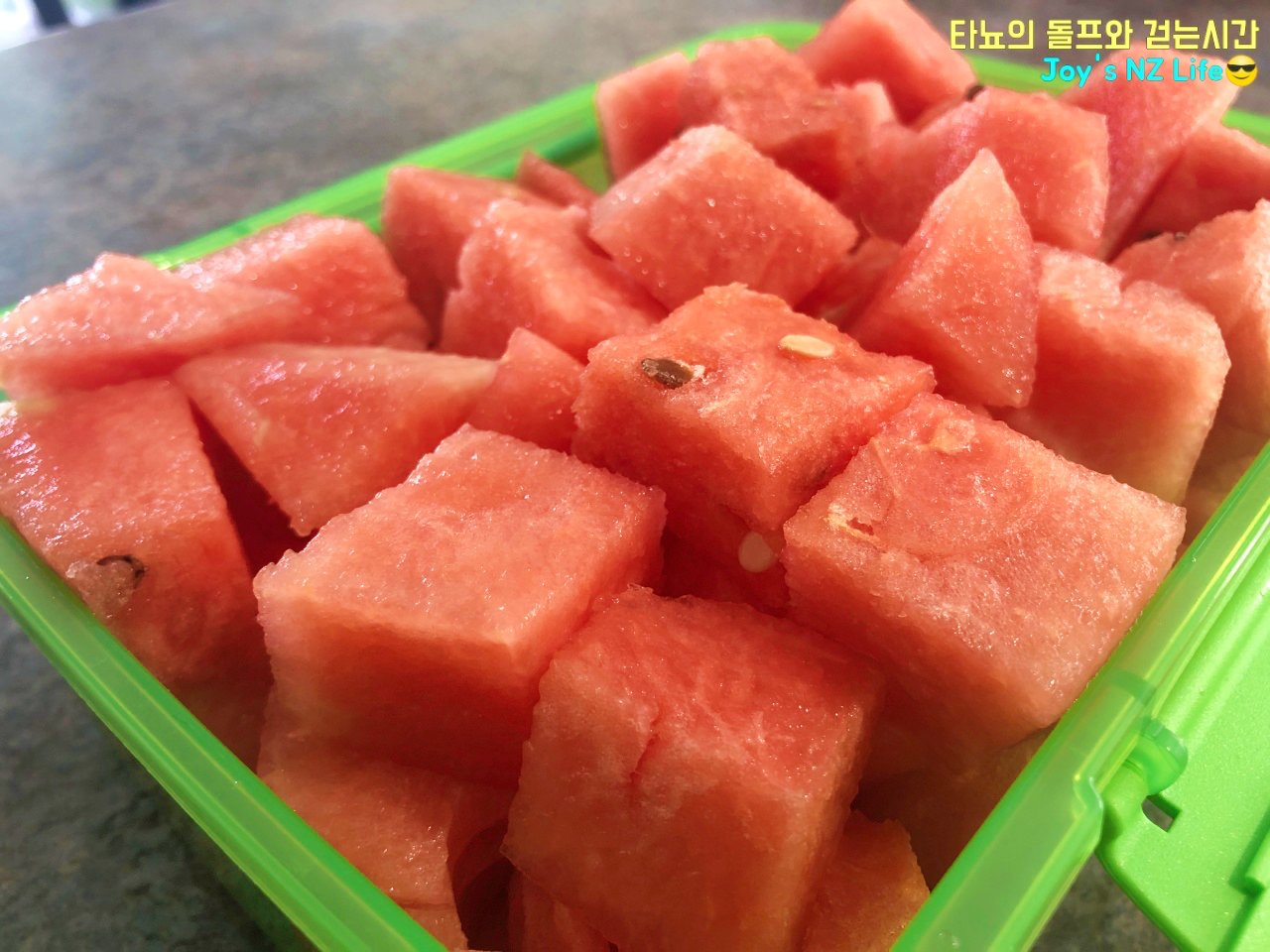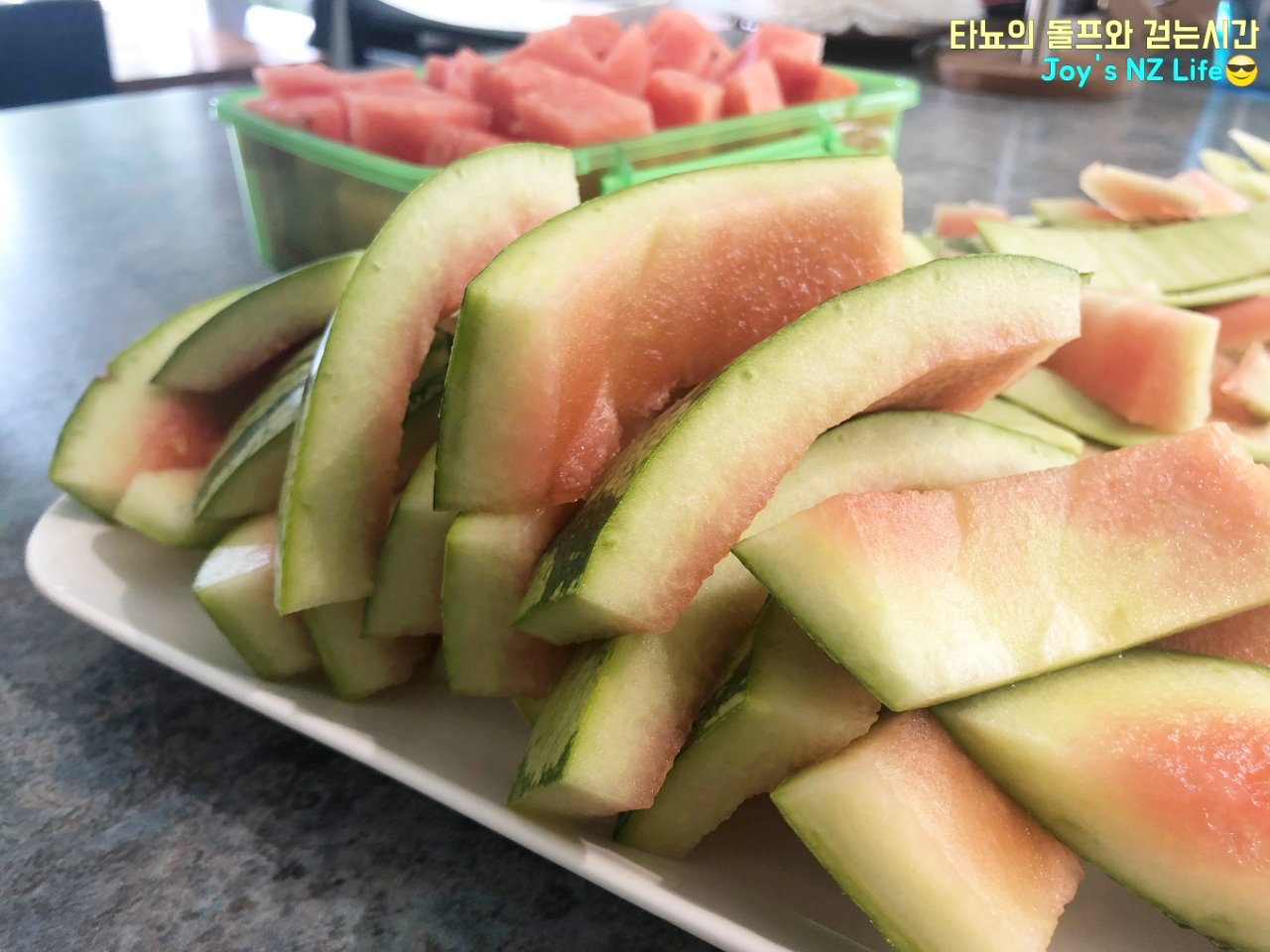요즘 한국은 바쁘게 찾아온 여름으로 인해 많이 덥다고 들었어요. 한국의 여름을 느껴보지 못한 지 어느새 4년이 다 되어가네요. 시간은 화살처럼 빠른 것 같고 여기서는 나이 세는 일도 거의 없어서 가끔 제 나이도 헷갈리곤 합니다. 뉴질랜드는 한국과 계절이 거꾸로 가다 보니 올 초 1월에 맛있게 먹었던 수박껍데기 이야기를 이제야 적게 되었네요. 제가 맛있게 먹던 순간은 한국의 아주 추운 겨울이었으니 공감대가 전혀 없겠다 싶어서 묵혀뒀었죠.