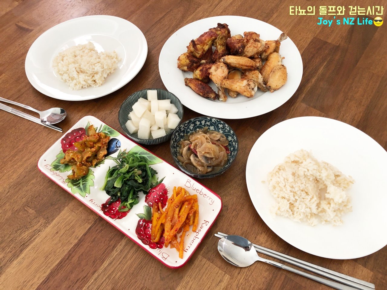 지난번에 만들어둔 오이지무침과 시금치나물, 버섯나물, 치킨무, 에어프라이기로 튀긴 치킨에 갓 무쳐낸 수박 껍질 무침 꺼내서 신랑과 맛있는 저녁식사 했었습니다. 더운 여름에 참 잘 어울리는 아삭하고 시원한 느낌의 수박 껍질 무침이에요. 여러분도 맛있게 드세요.