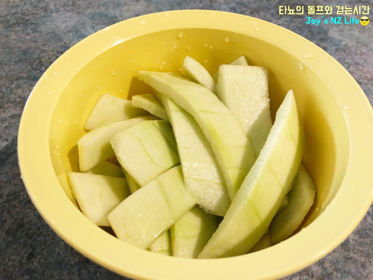 요즘 한국은 바쁘게 찾아온 여름으로 인해 많이 덥다고 들었어요. 한국의 여름을 느껴보지 못한 지 어느새 4년이 다 되어가네요. 시간은 화살처럼 빠른 것 같고 여기서는 나이 세는 일도 거의 없어서 가끔 제 나이도 헷갈리곤 합니다. 뉴질랜드는 한국과 계절이 거꾸로 가다 보니 올 초 1월에 맛있게 먹었던 수박껍데기 이야기를 이제야 적게 되었네요. 제가 맛있게 먹던 순간은 한국의 아주 추운 겨울이었으니 공감대가 전혀 없겠다 싶어서 묵혀뒀었죠.