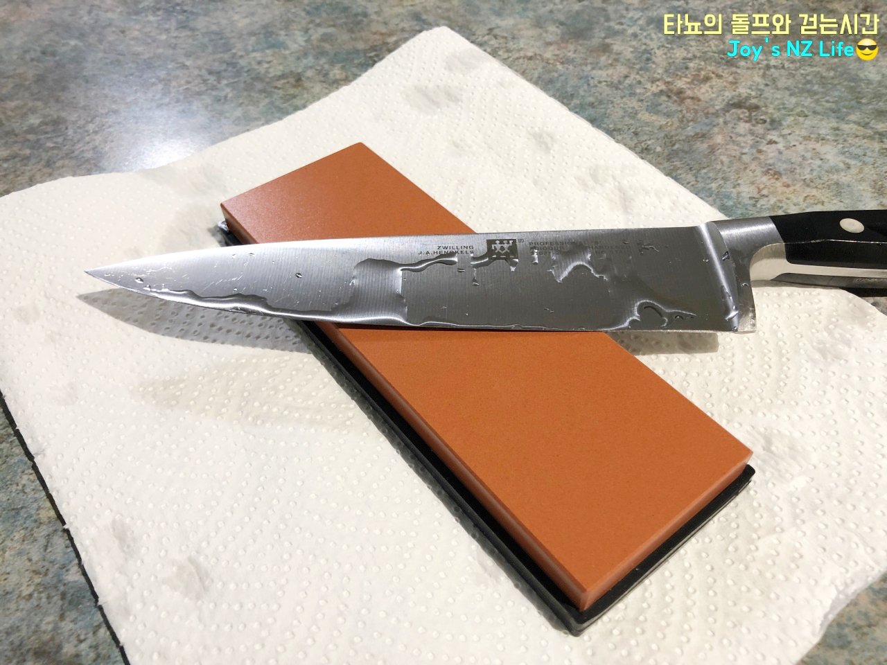 결혼할 때 혼수로 마련했던 소중한 칼들이 점차적으로 무뎌져가는 것을 많이 느꼈습니다. 작년까지는 쉐프 친구가 숫돌에 칼을 종종 갈아줘서 날카롭게 사용했었는데, 다른 지역으로 일을 옮기게 되면서 제 칼은 그저 방치가 되었네요. 흔히 야스리라고 부르는 칼 연마기가 칼세트에 있어서 꾸준하게 사용했지만 숫돌에 갈아서 사용을 해보니 천지차이더라고요.