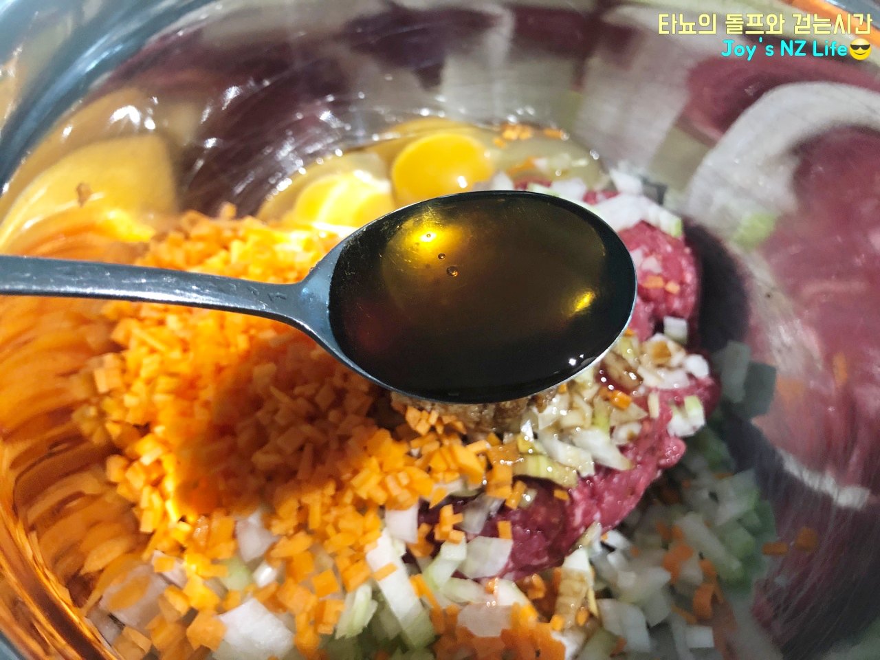 소고기 다짐육 500g의 양은 생각보다 많습니다. 저는 아침 저녁으로 구워주려고 조금 넉넉하게 준비를 했습니다. 로컬마트에서 판매하는 소고기 다짐육은 기름기가 상당히 많아서 하얀색과 붉은색 비율이 거의 비슷한 편인데요. 한인 정육점에서 구입하는 다짐육은 담백하게 나오는 편이라 꽤 마음에 듭니다.