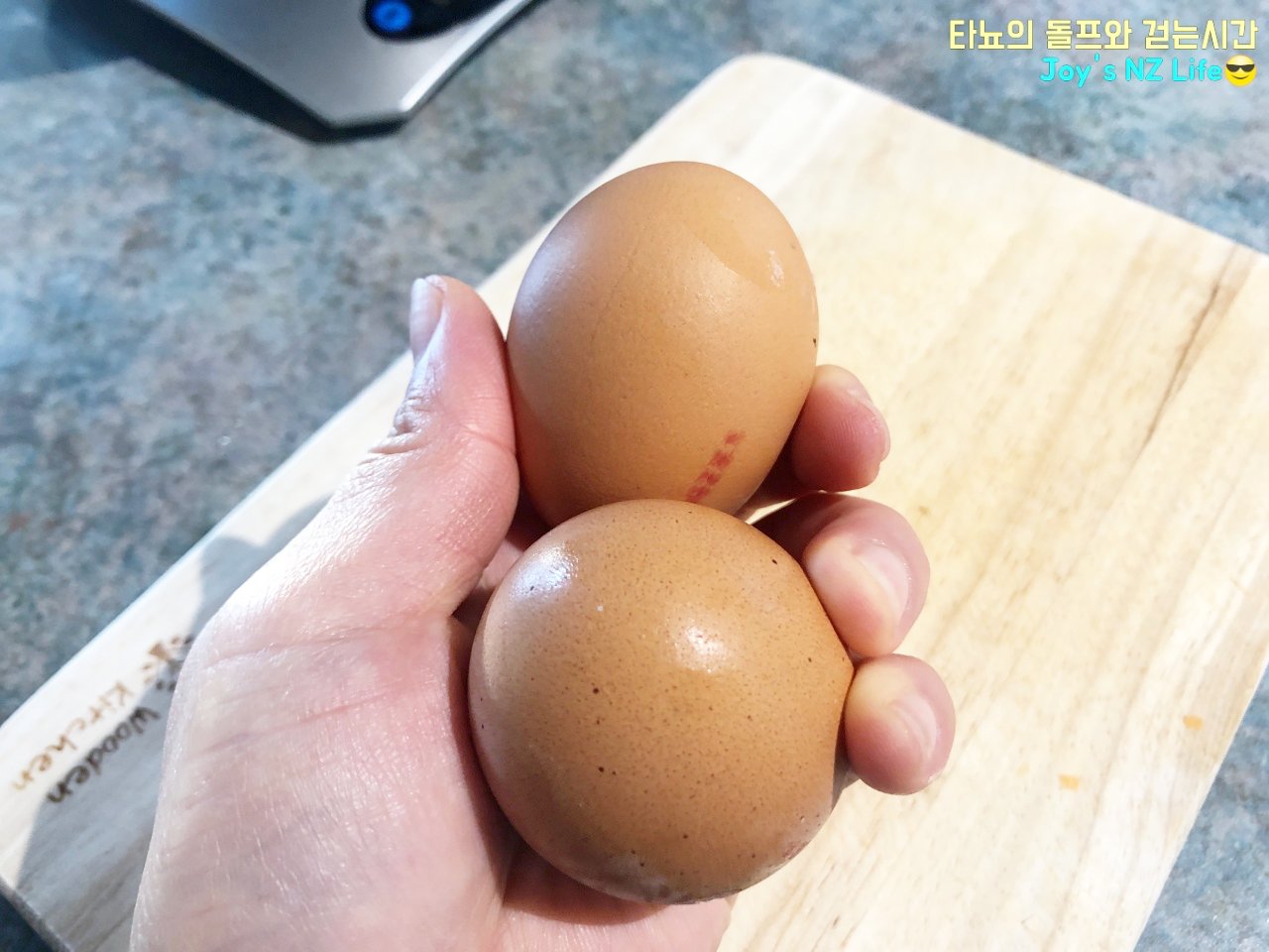 달걀 2개를 넣었어요. 현지에서 달걀 구입할 때는 로컬마트나 한인마트보다 중국마트가 훨씬 저렴합니다. 30개 1판에 적어도 2불 이상 차이가 나는 편이니 중국 마트 가서 구입하는 것을 추천해요.