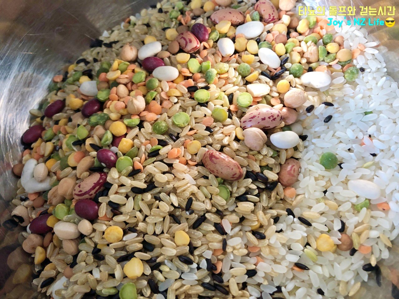 마트에서 판매하는 수프 믹스 종류는 아주 다양합니다. 이렇게 갖가지 곡물이 섞인 것도 있고 한 두가지가 섞이거나 한 가지만 든 제품도 있죠. 키위들은 수프를 끓일 때 넣어 먹지만, 저는 잡곡밥이 먹고 싶을 때 쓰고 있어요. 이렇게 다양한 종류의 곡물믹스가 375g에 1천5백 원이면 굉장히 저렴하다고 생각합니다. 한인마트나 중국마트에서도 잡곡은 구입할 수 있지만, 현지 마트에서 수프 믹스를 구입하는 것이 가장 저렴한 것 같습니다.