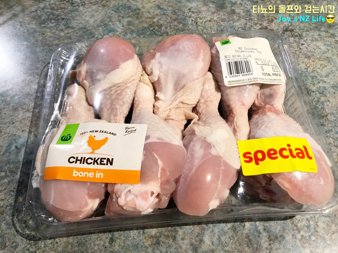 - 큰 닭다리 7개입 NZ$6 (한화 4,700원)