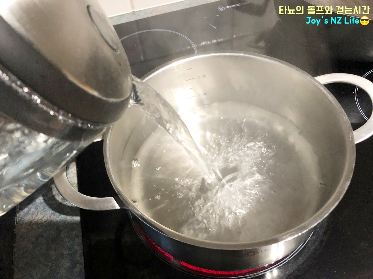 저는 뜨거운 물을 사용할 때 커피포트로 물을 끓여서 사용하는 편이에요. 차가운 물을 냄비에 끓이는 것보다 이게 훨씬 빠릅니다.