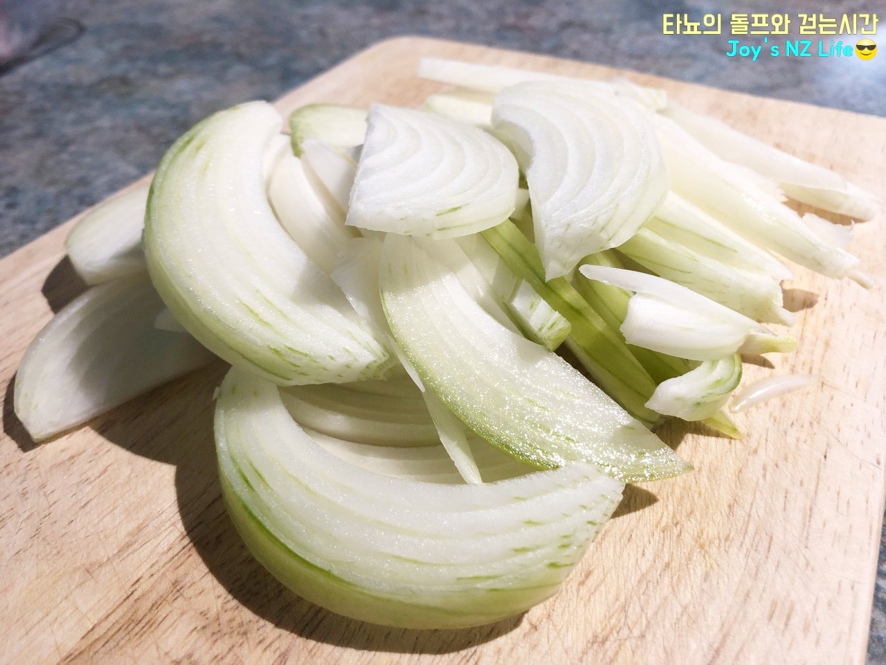 양파와 파는 먹기 좋은 크기로 잘라서 준비해주세요. 저는 파가 좀 얇고 작아서 4대를 잘라서 준비했지만, 한국에서 구입하는 대파는 2대로 충분할 것 같습니다.