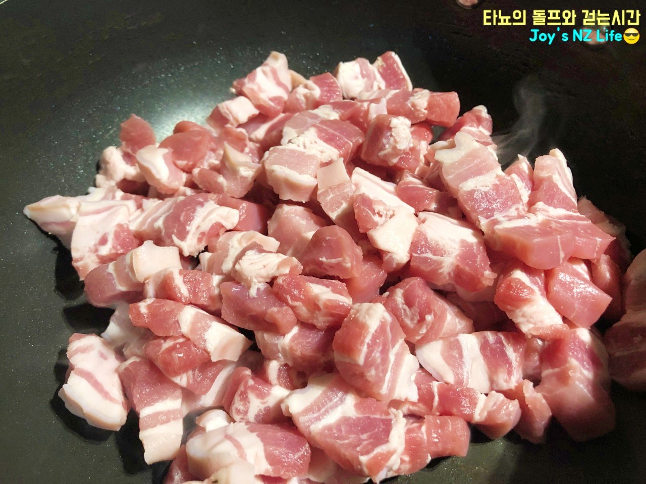 오늘도 우중충한 날을 맞이하여 신랑과 함께 맛있는 저녁식사를 먹었습니다. 메뉴는 바로 '돼지 두루치기'에요. 기름기가 많지 않은 뉴질랜드의 삼겹살과 신김치를 넉넉하게 넣어서 만들어 봤어요. 얼마나 맛있었냐고요? 여러분도 만들어 보시면 얼마나 맛있는지 아실 거예요.