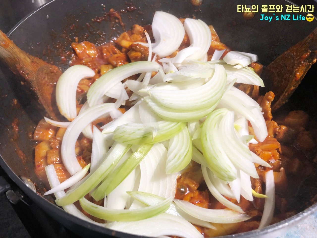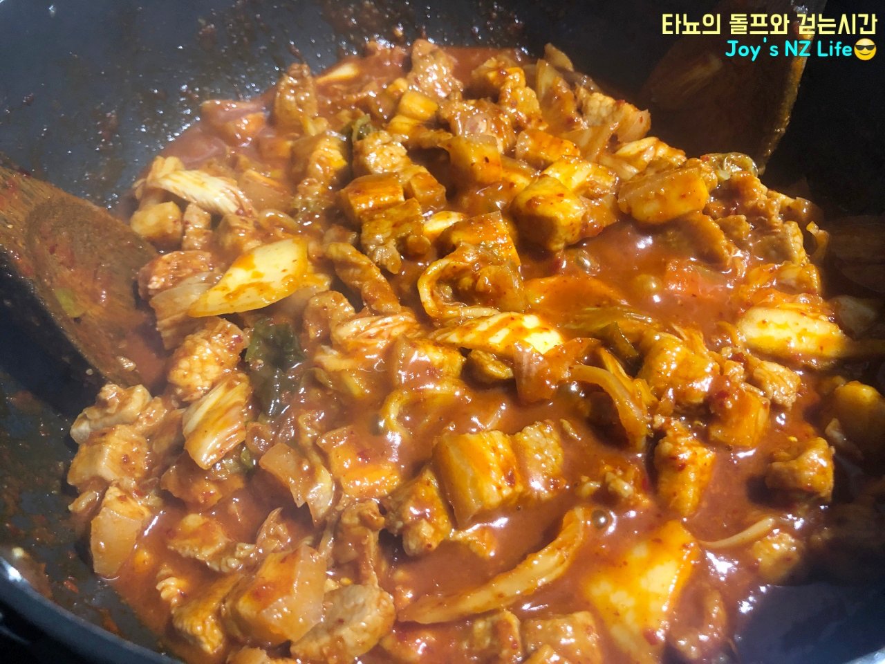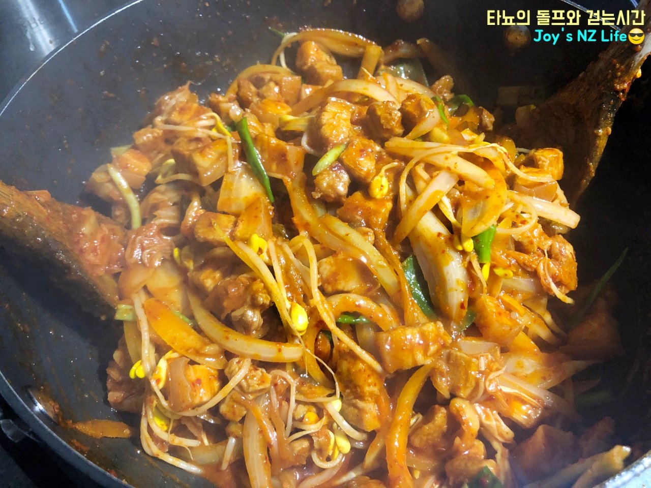 오늘도 우중충한 날을 맞이하여 신랑과 함께 맛있는 저녁식사를 먹었습니다. 메뉴는 바로 '돼지 두루치기'에요. 기름기가 많지 않은 뉴질랜드의 삼겹살과 신김치를 넉넉하게 넣어서 만들어 봤어요. 얼마나 맛있었냐고요? 여러분도 만들어 보시면 얼마나 맛있는지 아실 거예요.