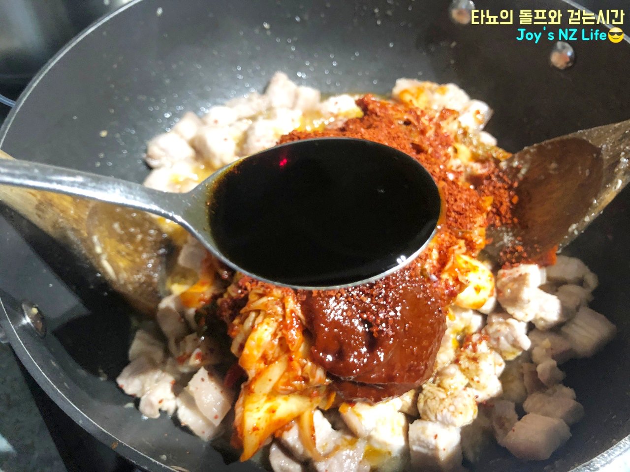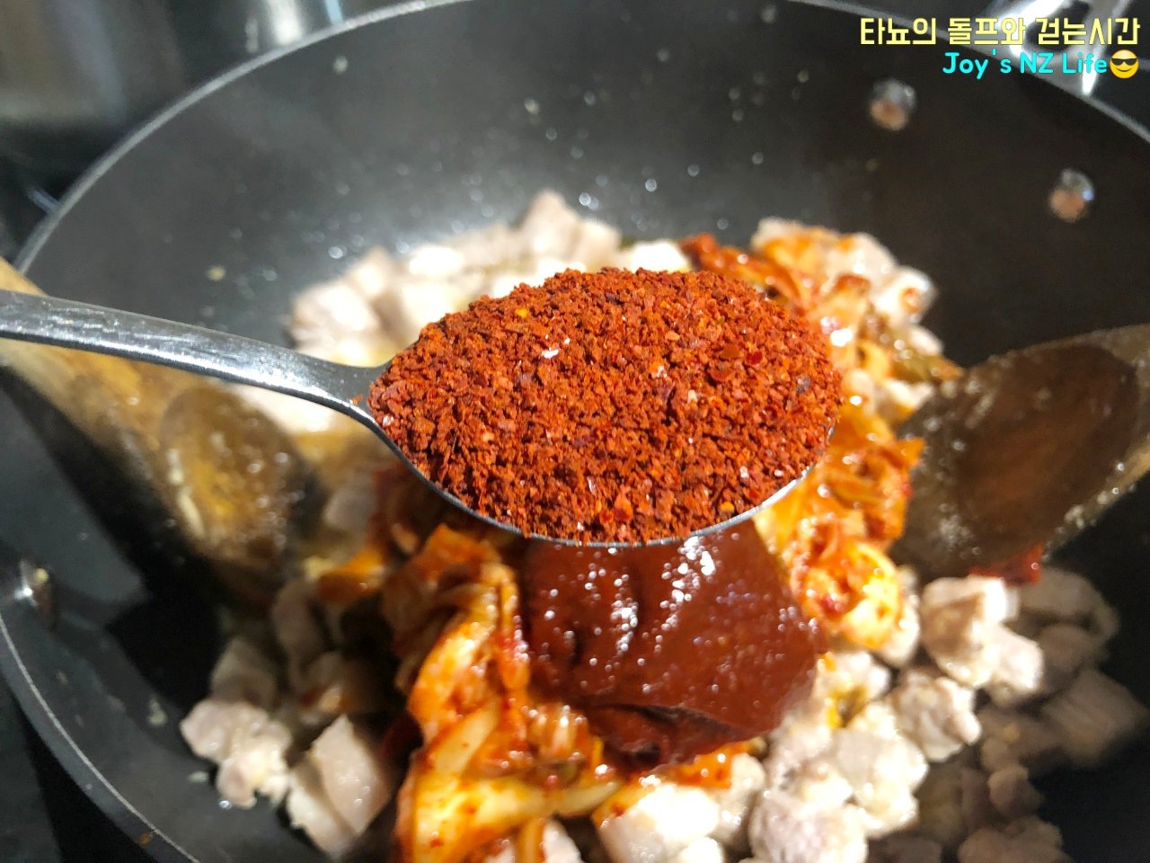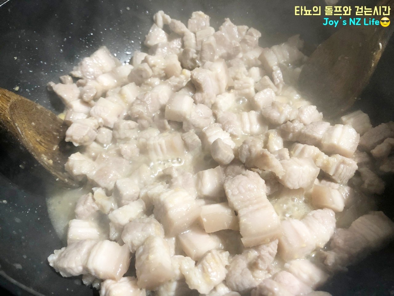 오늘도 우중충한 날을 맞이하여 신랑과 함께 맛있는 저녁식사를 먹었습니다. 메뉴는 바로 '돼지 두루치기'에요. 기름기가 많지 않은 뉴질랜드의 삼겹살과 신김치를 넉넉하게 넣어서 만들어 봤어요. 얼마나 맛있었냐고요? 여러분도 만들어 보시면 얼마나 맛있는지 아실 거예요.