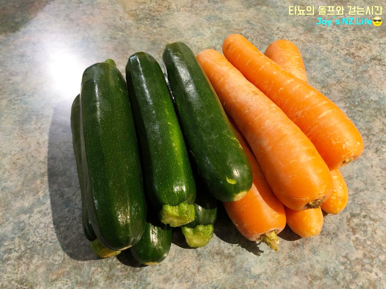 뉴질랜드에서는 쥬키니 호박을 'Courgettes'라고 불러요. 날씨가 추워지면 가장 가격 변동이 큰 야채 중 하나가 바로 이 놈이죠. 저는 봄과 여름, 가을에는 집에서 쥬키니 호박을 키워서 먹기 때문에 딱 겨울에만 마트에서 사먹는 것 같네요.