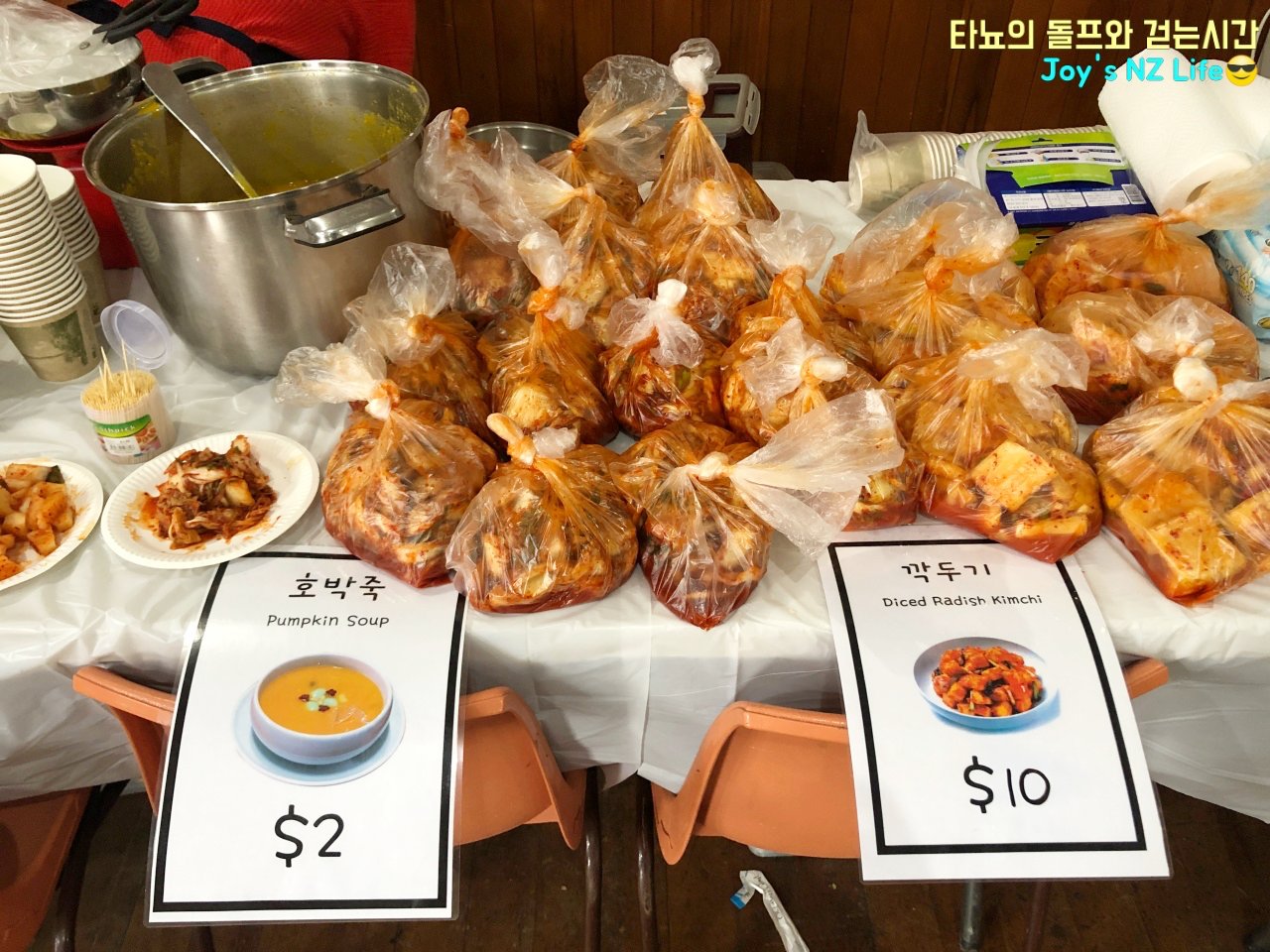 오늘 소개하는 사진은 현지에서 1년에 한 번씩 정기적으로 열리는 한인들의 바자회 모습입니다. 한국인들이 주도하지만 홍보는 모두에게 하기 때문에 키위 손님들도 많이 찾아옵니다. 이 바자회에서는 일반적인 게라지 세일의 모습인 중고 물건들도 많이 판매를 하고 있지만, 한국인 손님들에게 가장 인기가 좋은 코너는 역시 한국음식 코너인 것 같네요.