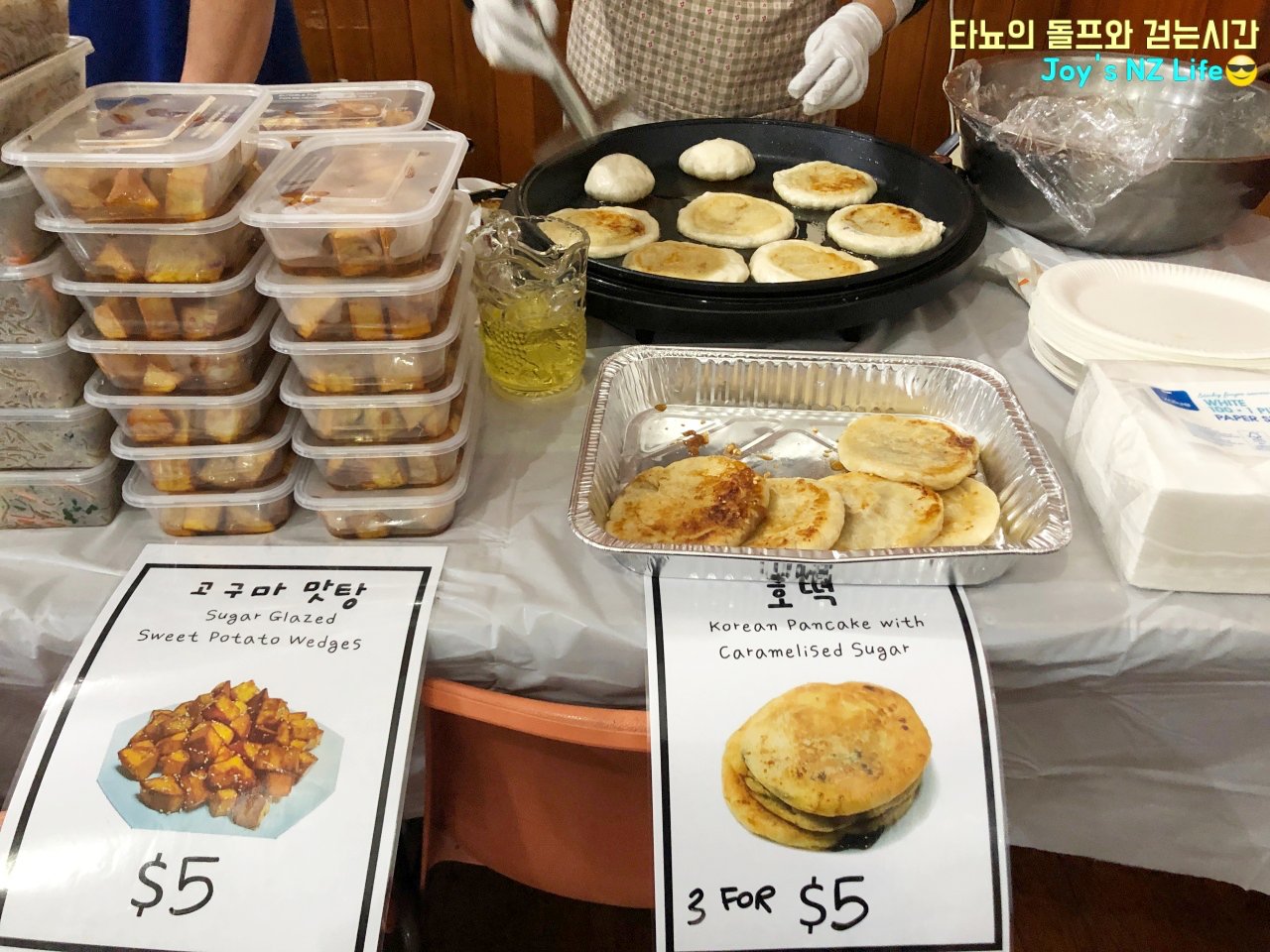 호떡은 어른들이 직접 반죽도 하고 소까지 듬뿍 준비해서 즉석에서 바로 구워서 판매합니다. 3개 5불이면 가격이 아주 괜찮은 것 같아요. 물론 한국보다는 조금 더 비싸겠죠? 호떡을 오랜만에 먹어보니 한국에서 먹던 씨앗호떡이 그리 당기더군요.