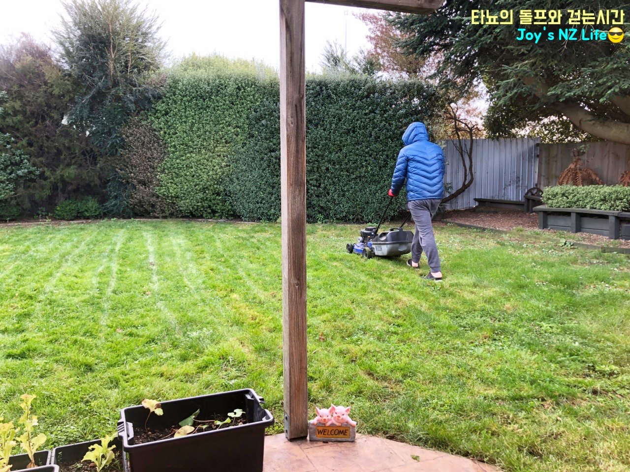 매주 목요일 이른 아침은 쓰레기를 수거해가는 날이에요. 그리고 매주 목요일 오후에는 신랑이 잔디를 깎습니다. 음식물 쓰레기 통을 최대한 더럽히지 않으려면 통 가장 아래에는 잔디를 깔아줘야하는데요.