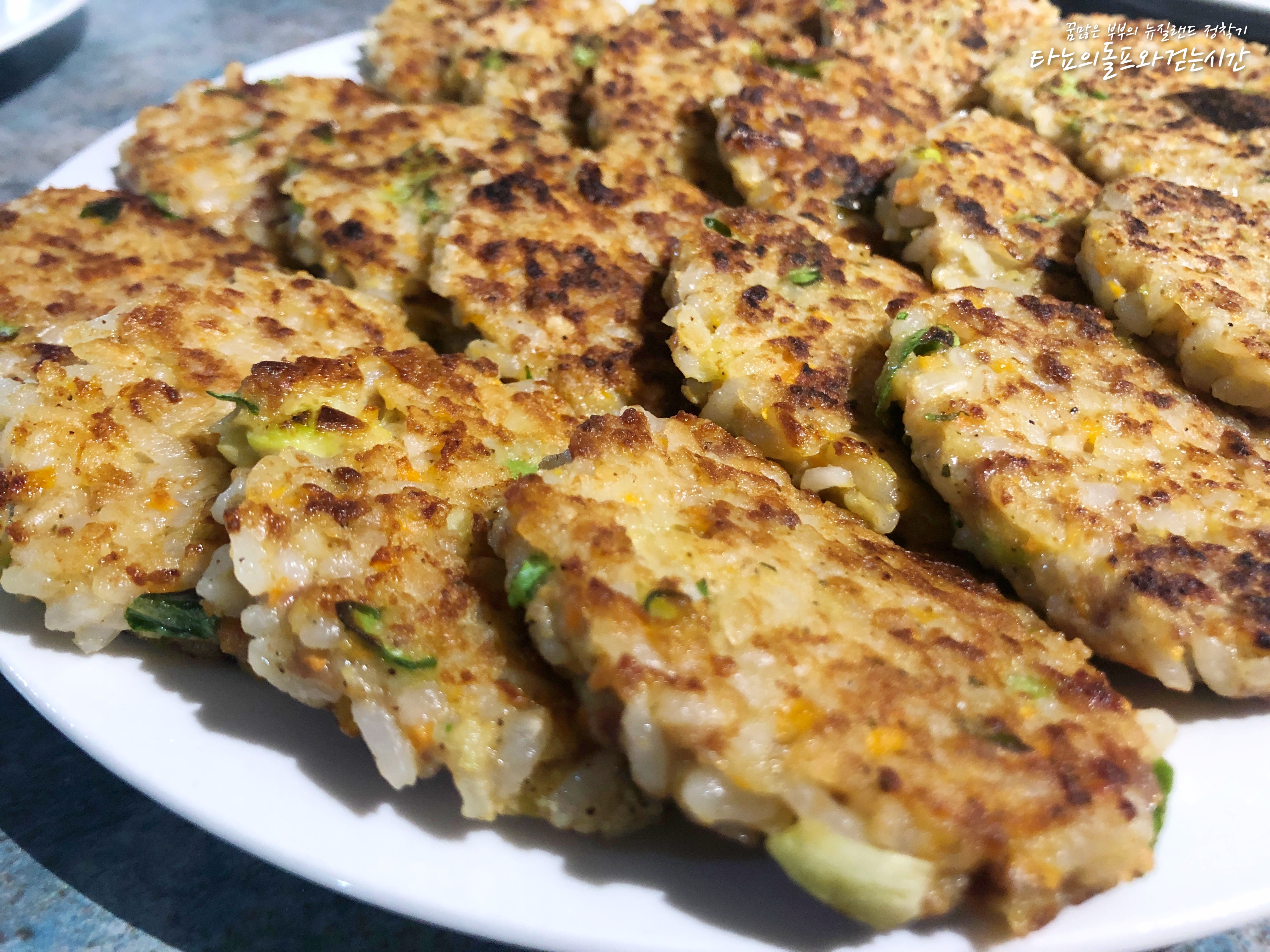남은 찬밥으로 뚝딱 만들어본 '밥전'입니다. 똑 떨어지게 밥을 짓는게 사실 쉬운 일이 아닌 것 같아요. 애매하게 밥이 남는다면 간식 또는 가벼운 식사로 밥전 만들어 보세요. 씹는 식감도 좋고 맛도 좋은데 들어간 재료가 많으니 건강에도 좋은 음식인 것 같아요. 전이라는 생각을 하면 별미로 즐기기에도 아주 좋은 것 같고요. 이제 남은 찬밥, 걱정할 필요 없겠죠?