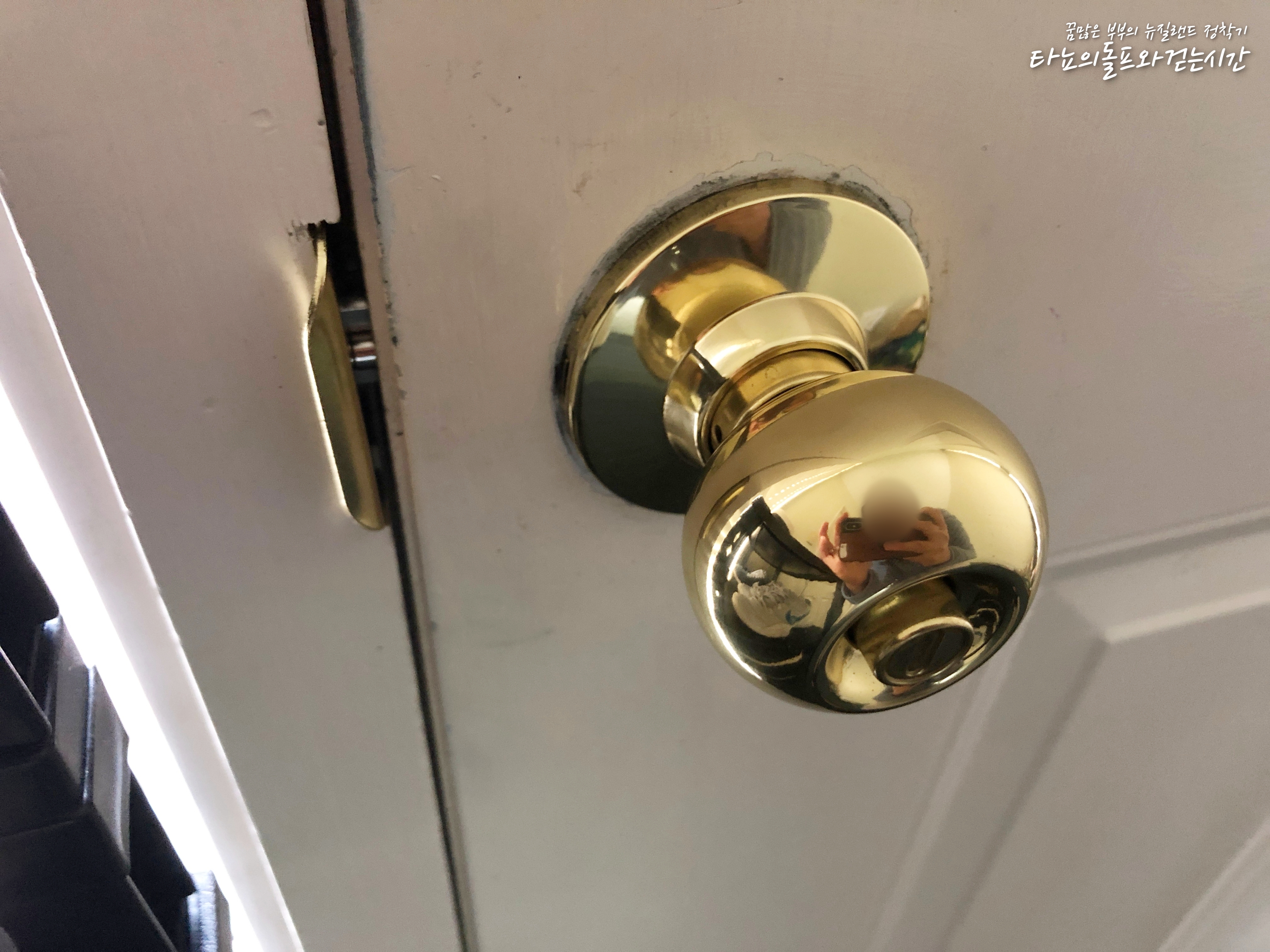 제가 영어가 서툴고 어려워하는 것이 느껴졌는지 아저씨는 처음부터 아주 천천히 친절하게 모든 과정을 설명해주셨어요. 기존에 달려있던 문고리가 어떤 상태였는지, 얼마나 위험한 상태였는지 말해주셨죠. 카드나 칼로 문 옆을 슥 찔러 올리면 문을 따고 들어올 수 있는 상황이더라고요. 그래서 새로 다는 문고리는 그렇게 열 수 없는 조금 더 좋은 것으로 달아주신다고 하셨어요.
