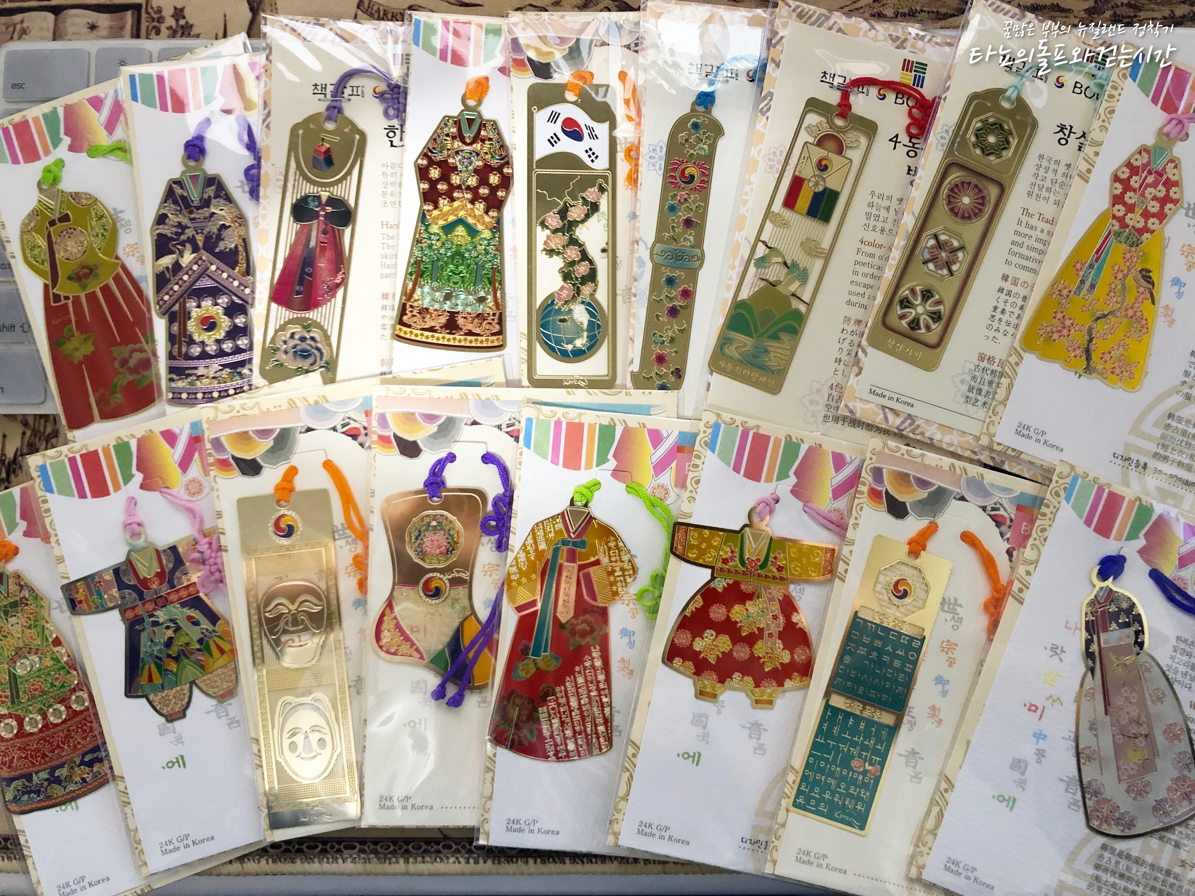 몇 년 전에 한국에서 주문했던 한국 전통 문양이 새겨진 북마크에요. 꽤 많이 주문했었는데 외국인 친구들에게 하나씩 나눠주고 이제 이만큼 남았네요. 조만간에 한 번 더 주문을 해야 할 것 같아요. 각 북마크에 대해 영어로 설명이 꽤 잘 되어 있어서 한국의 작은 문화를 알리기에도 참 좋은 선물인 것 같습니다.