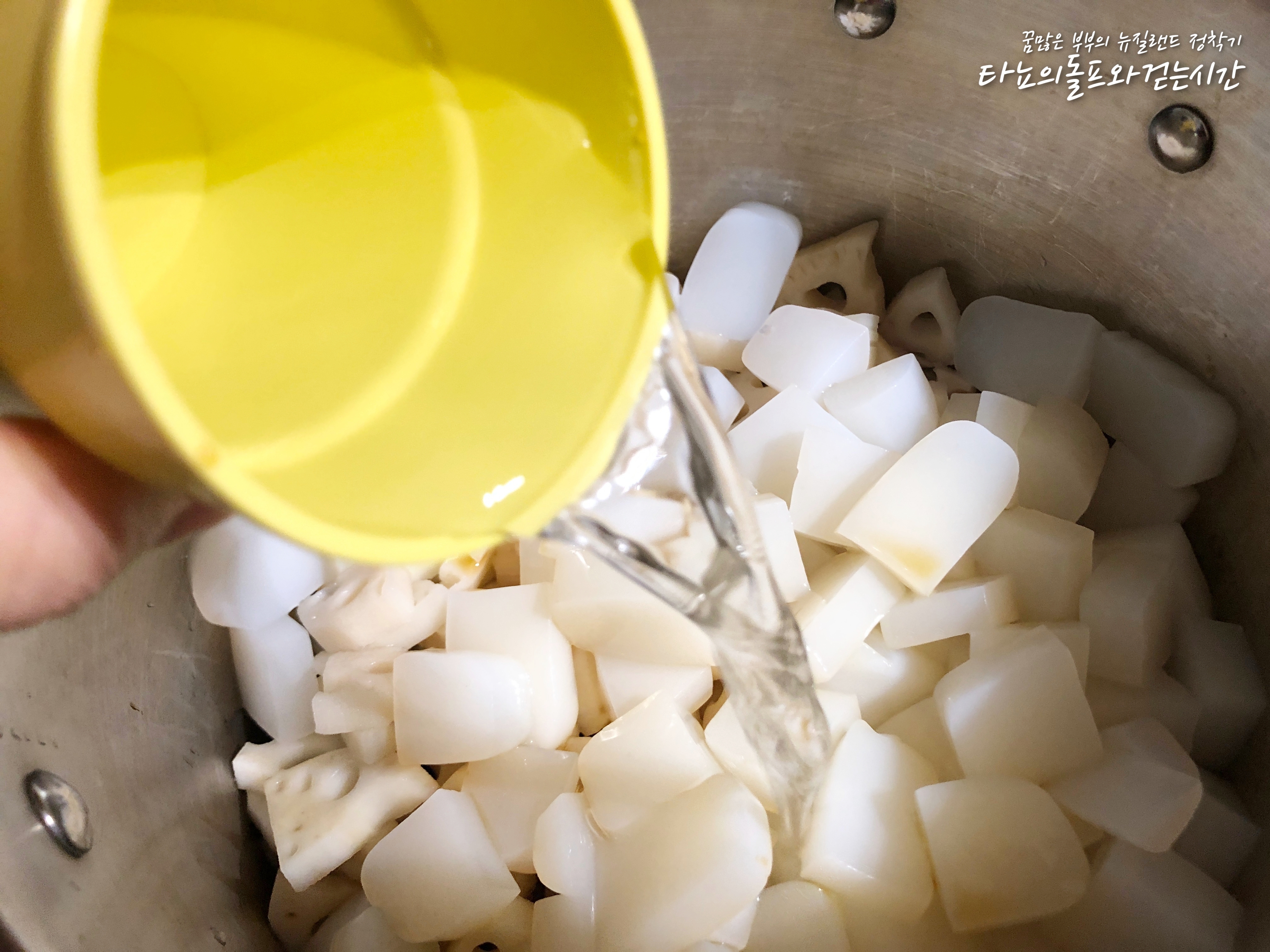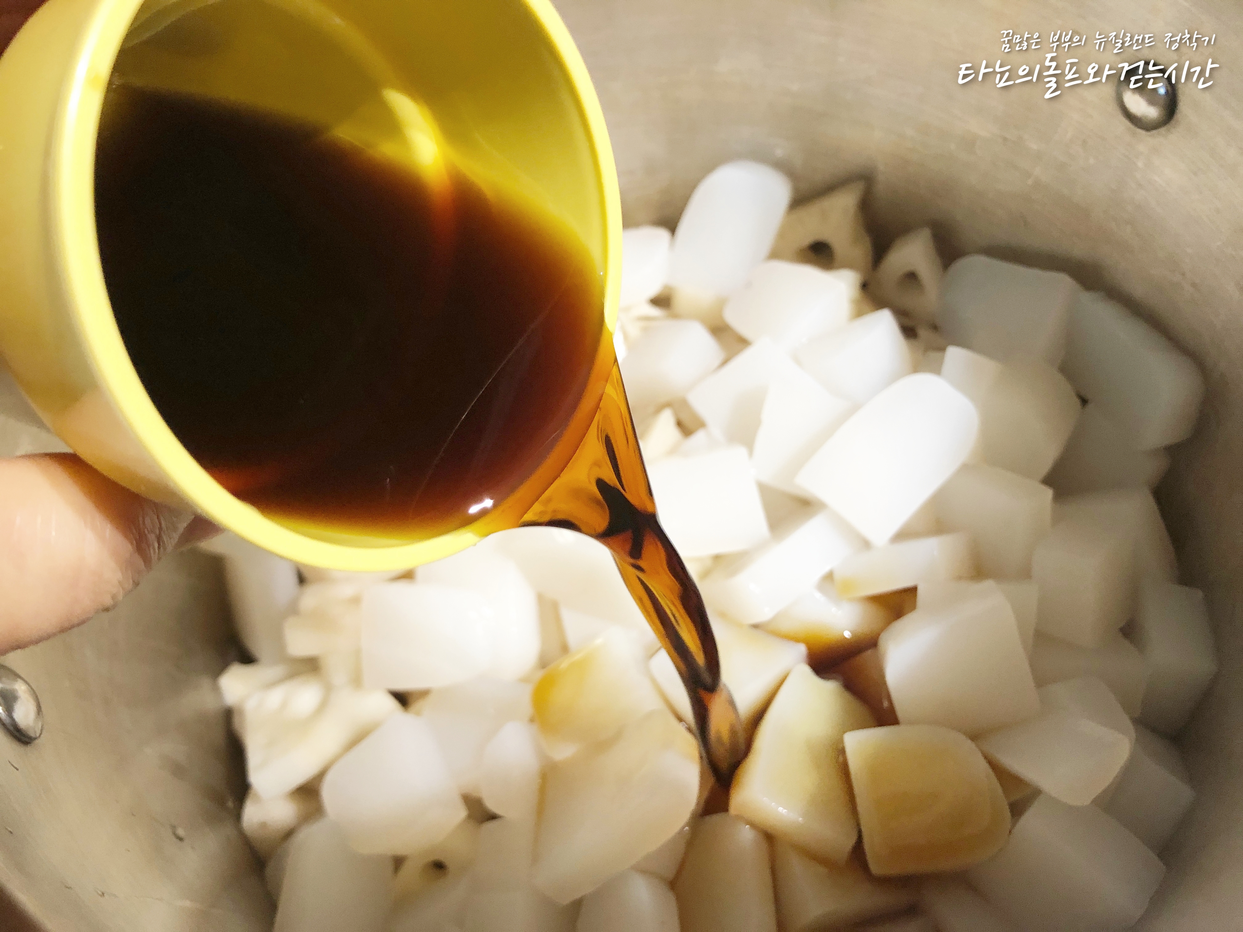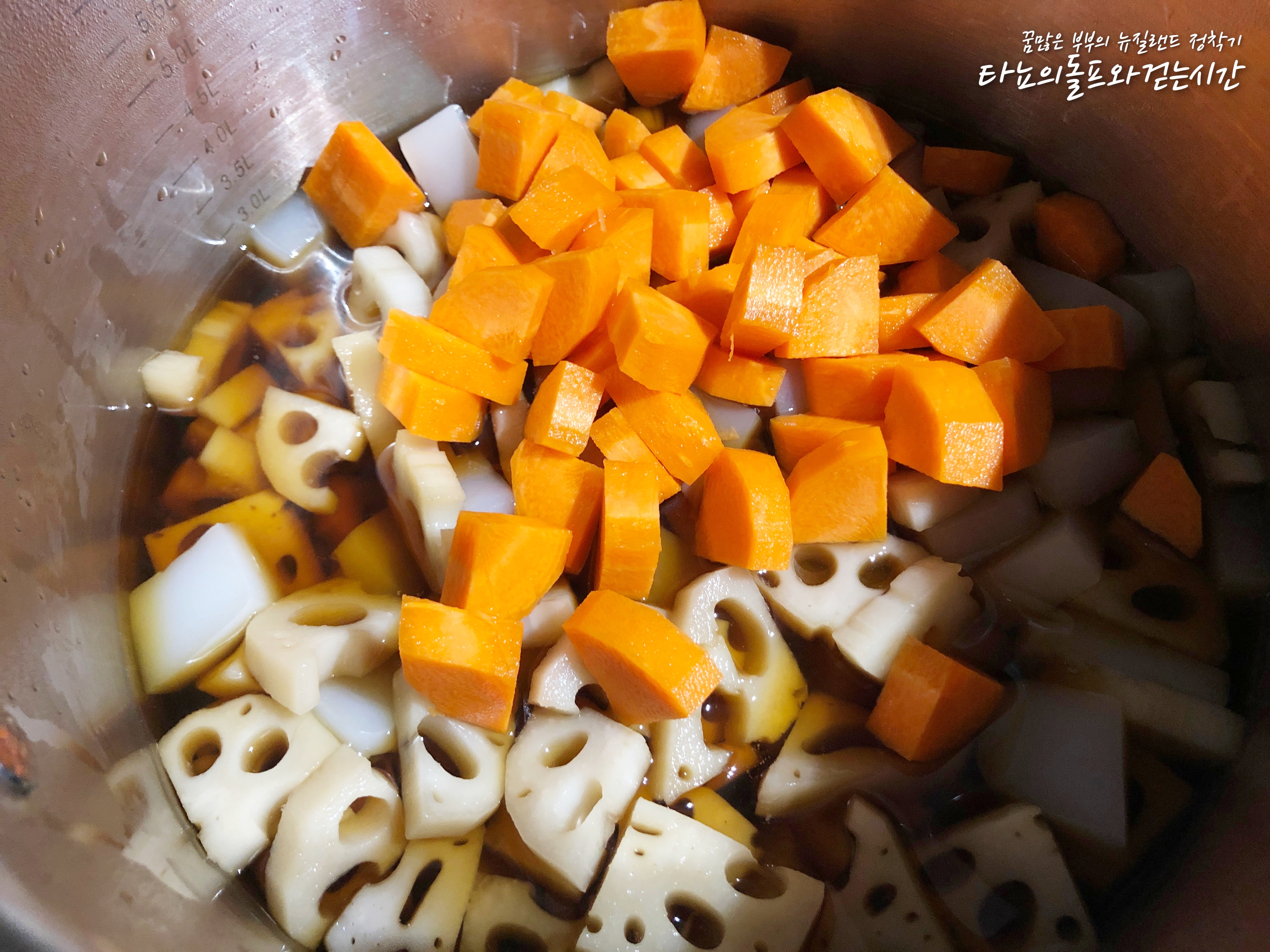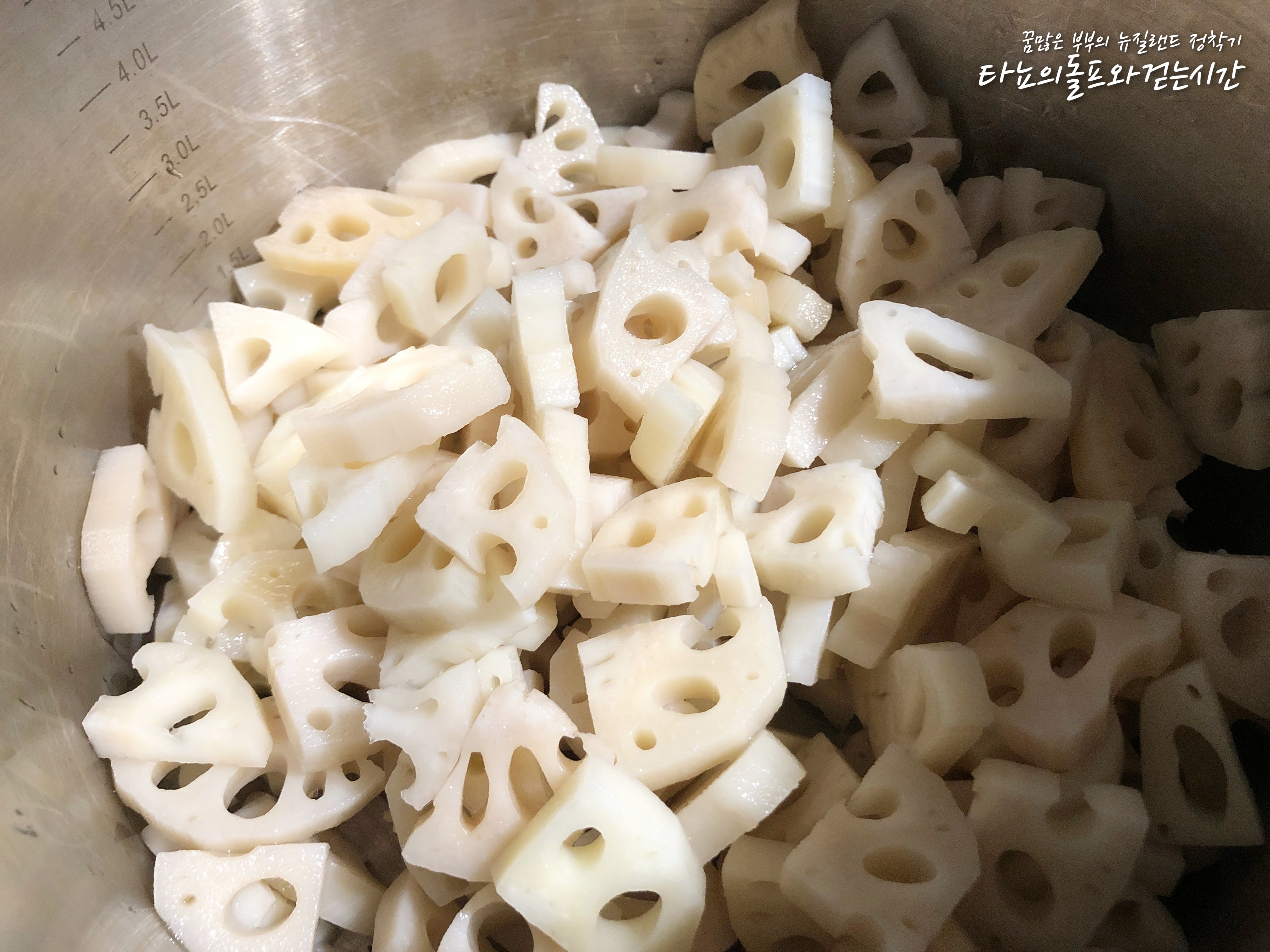 한동안 냉장고에 없었던 연근조림을 좀 만들어야겠다는 생각을 했어요. 마침 코스코(한인마트)에 갔더니 국산 연근이 들어왔더라고요. 물론 냉동이긴 하지만, 그래도 좋아요. 뉴질랜드에서는 연근이 나지 않기 때문에 보통 수입을 하는데 대부분 일본산 연근이에요. 요즘 같은 시국에는 아무래도 일본산에 눈길이 더 가지 않는 것 같아요.