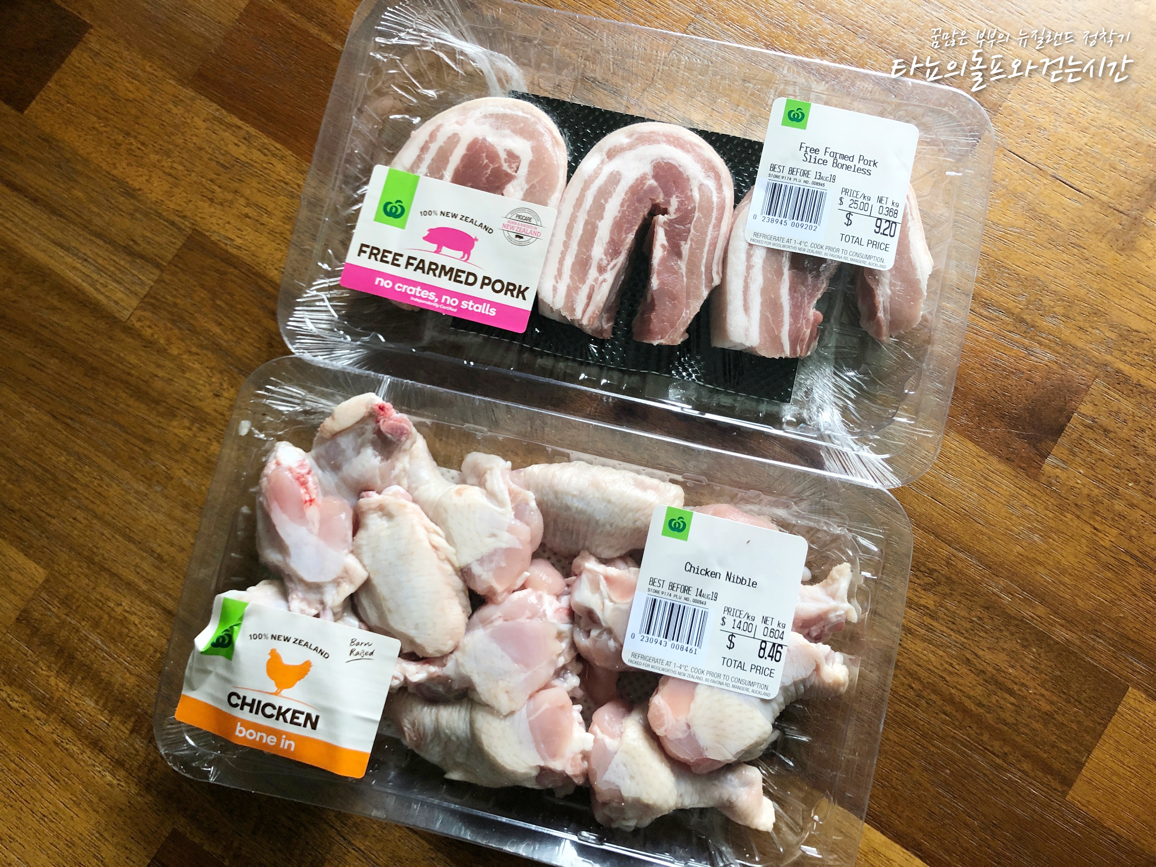 카운트다운에서 구입한 삼겹살과 닭고기예요. 저는 개인적으로 카운트다운에서 판매하는 삼겹살 굉장히 좋아합니다. 한인 정육점에서 판매하는 삼겹살보다 더 맛있는 것 같아요. 일단 삼겹살의 살과 지방의 비율이 완전 마음에 들고요. 한인 정육점에서 판매하는 삼겹살은 기름이 훨씬 더 많은 편입니다. 에어프라이어에 돌리면 완전 딱 맛있습니다. 물론 그냥 구워도 맛있고요.