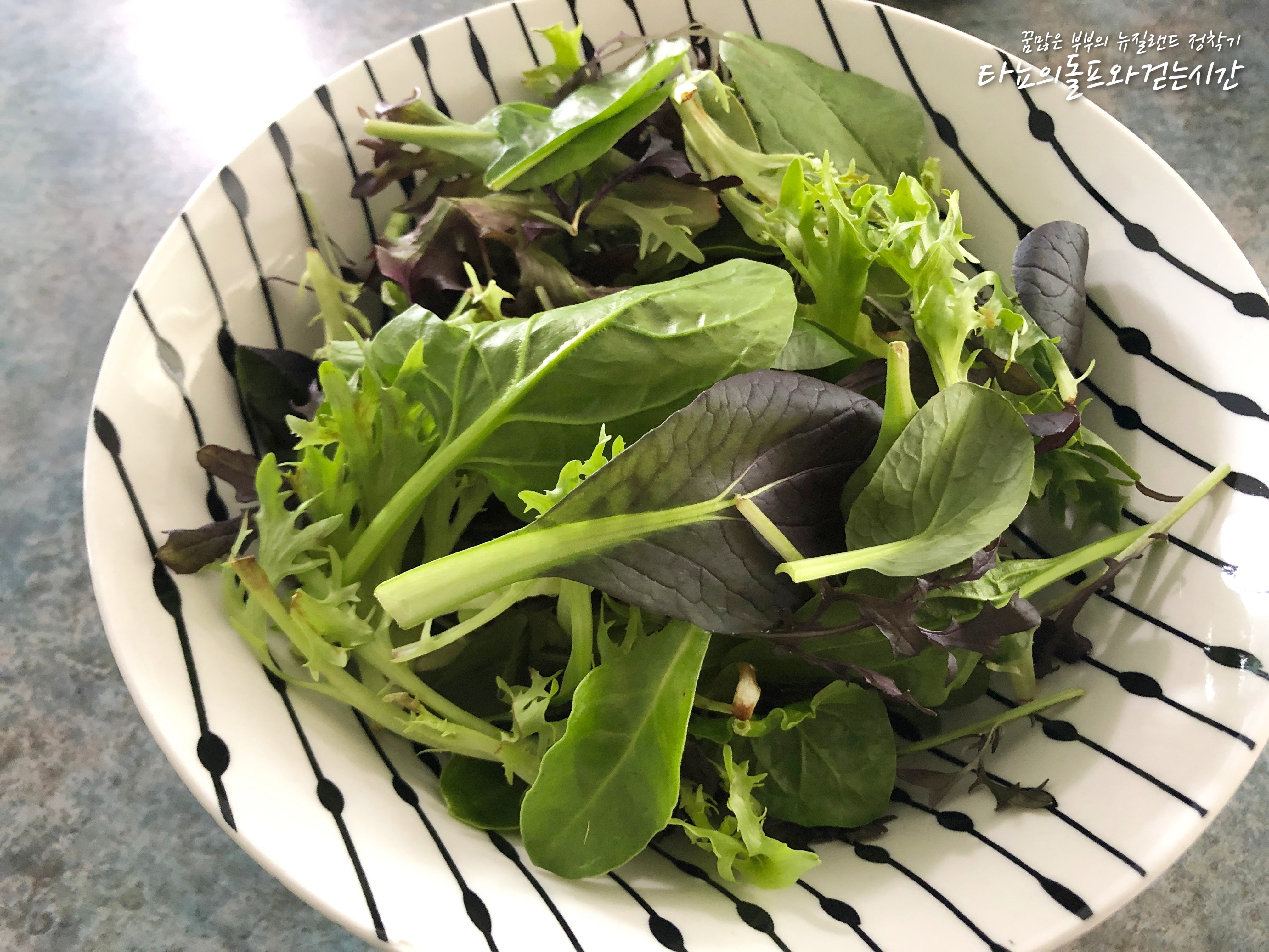 야채 위에 구운 닭고기 얹고 조리하지 않은 양송이 버섯 올려준 다음 발사믹 소스와 핫소스, 그릭 요거트 얹어서 함께 먹었습니다. 음, 진짜 건강한 맛이었어요. 마음 같아서는 쌈장 얹어서 먹고 싶었습니다 ^^;;