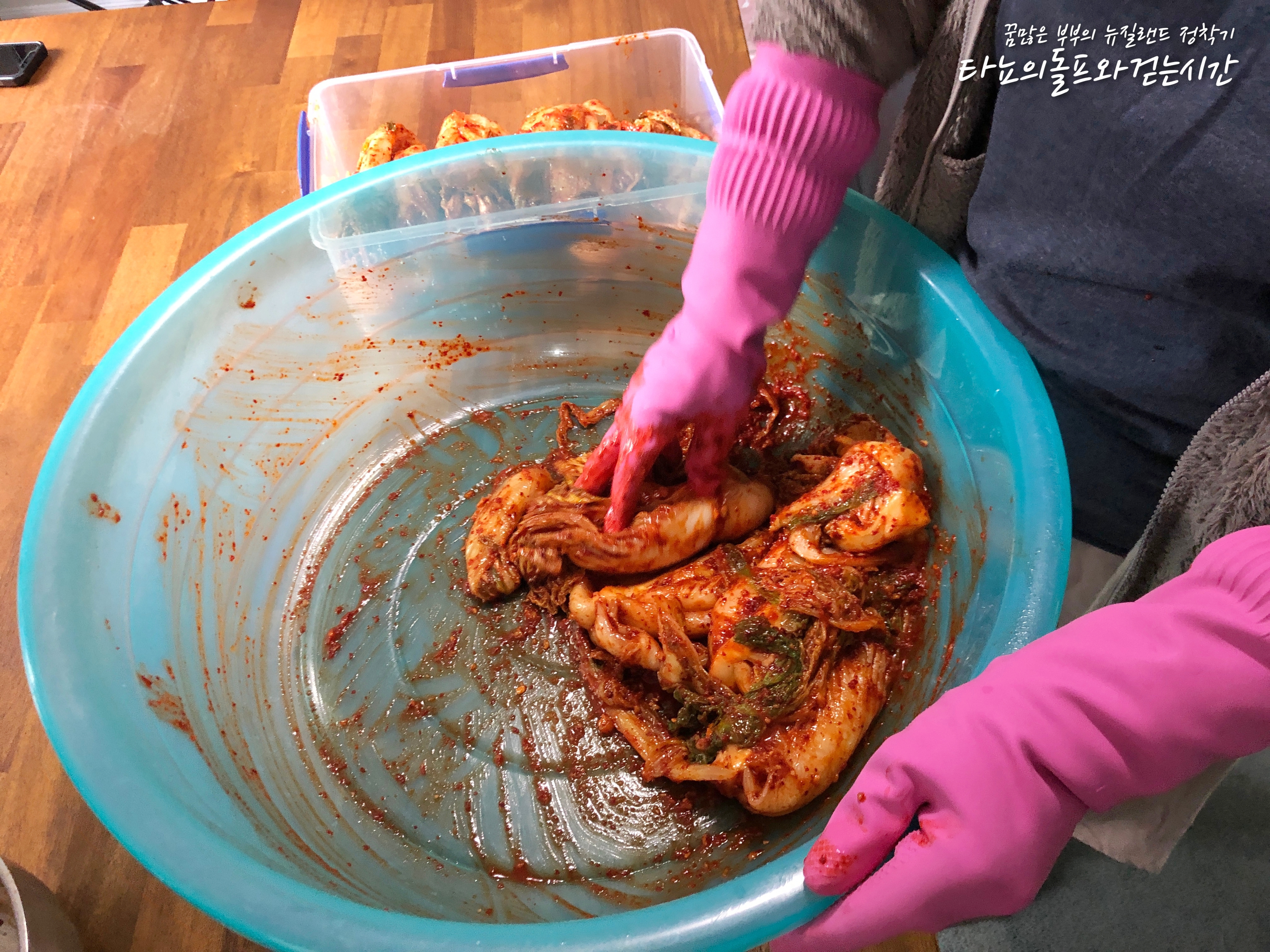 뉴질랜드에서 처음 먹어본 엄마의 수제비는 역시나 꿀맛, 엄마가 뜬 수제비는 어떻게 이리 쫀득하고 아주 얇은지요. 저는 늘 뭉탱이 뭉탱이 두껍게밖에 안되던데.. 엄마 손은 정말 금손인 것 같아요. 김치도 뚝딱뚝딱 담아주셨어요.