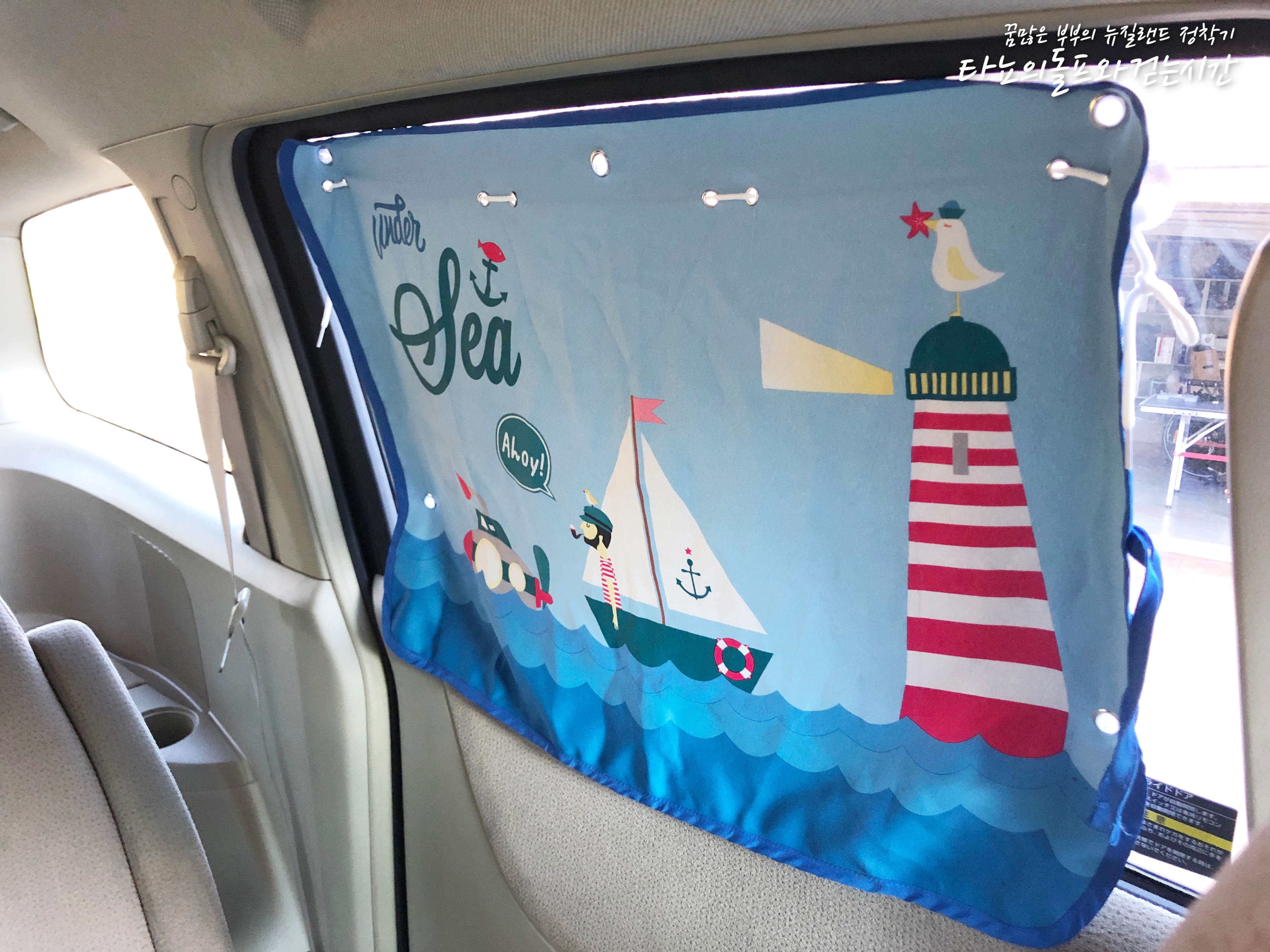 가족들이 도착하기 하루 전 날 지저분한 차 내부를 모두 정리했어요. 사실 저희 게으름뱅이들이라서 대충대충 보이는 곳만 치우고 살았었는데, 조카들이 타는 차가 더러우면 안될 것 같다는 생각에 꼼꼼하게 바닥까지 모두 청소했지요. 카페트를 떼내니 밑바닥이 얼마나 더러운지요. 구석구석 청소기로 밀고 닦고 먼지를 털어줬습니다. 아이들이 좋아할만한 햇빛 가리개도 미리 구입을 해서 붙였지요.