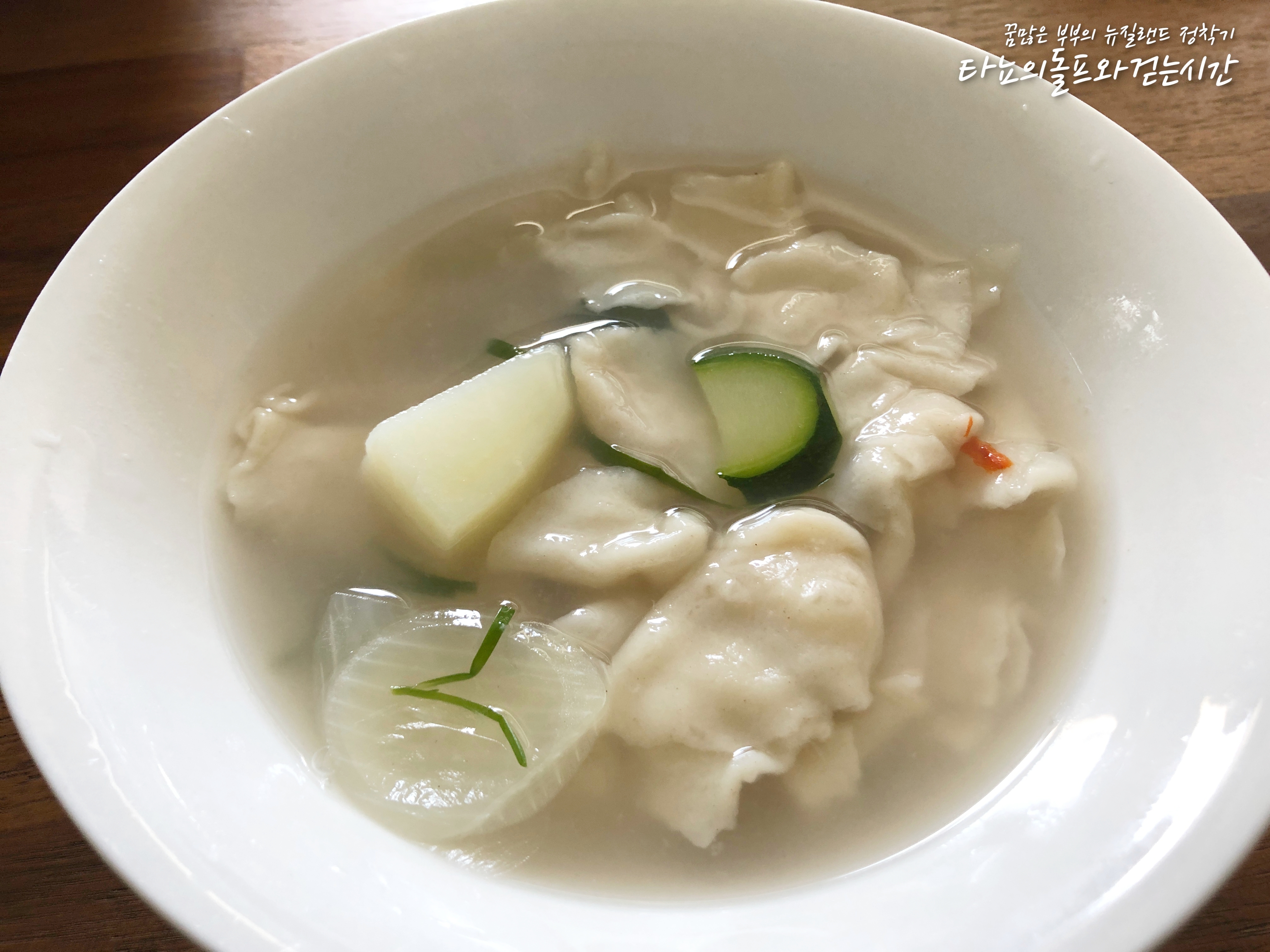 뉴질랜드에서 처음 먹어본 엄마의 수제비는 역시나 꿀맛, 엄마가 뜬 수제비는 어떻게 이리 쫀득하고 아주 얇은지요. 저는 늘 뭉탱이 뭉탱이 두껍게밖에 안되던데.. 엄마 손은 정말 금손인 것 같아요. 김치도 뚝딱뚝딱 담아주셨어요.