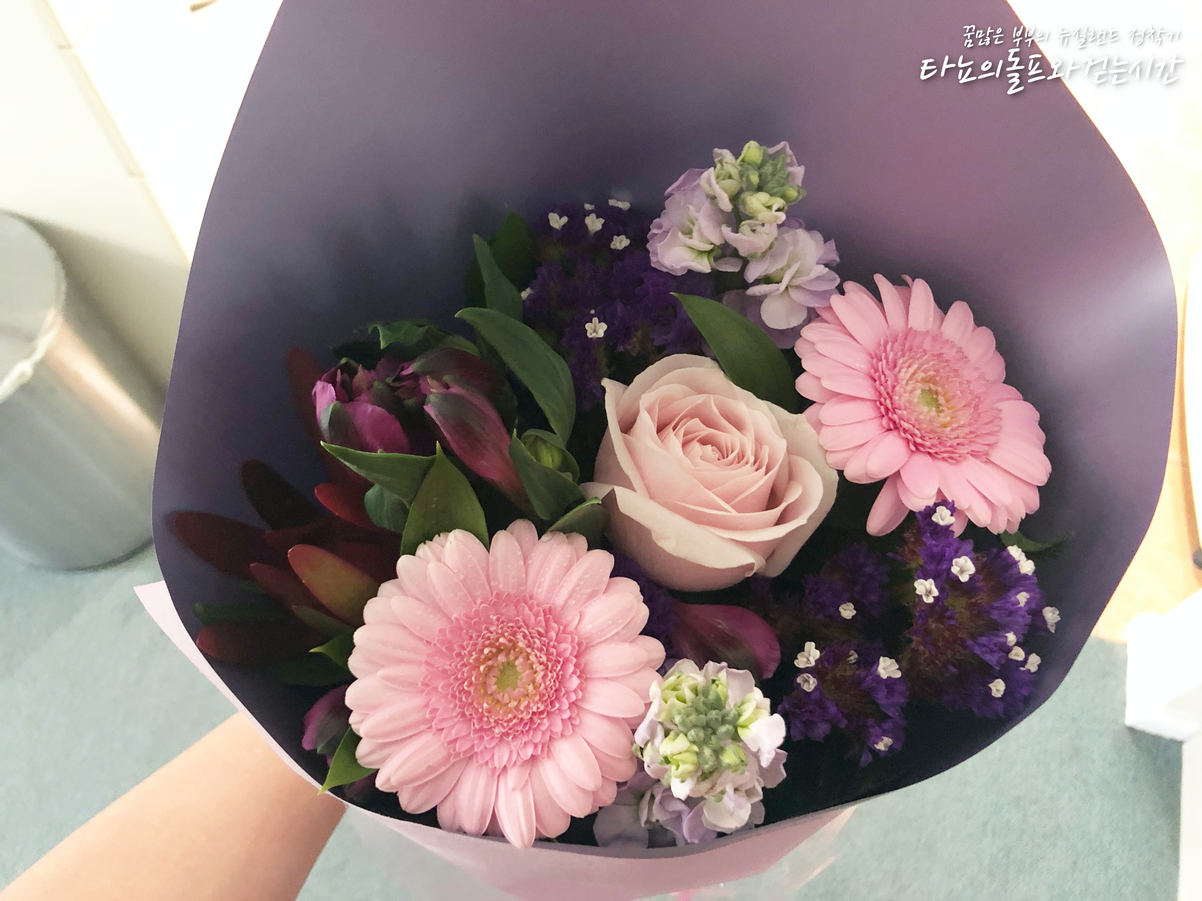학교 수업을 마치고 돌아온 신랑이 깜짝 선물을 준비했어요. 오랜만에 받아보는 깜짝 꽃다발이라 더 기분이 좋았어요. 울적하고 마음 허전할 아내를 위해서 이렇게 이쁜 선물을 준비해준 신랑에게 참 고마웠어요. 사실 처갓집 식구들과 두 달의 시간을 함께 보낸다는 것이 그리 쉬운 일이 아니었을텐데, 이렇게 잘 지내준 신랑에게 참 고마웠답니다.