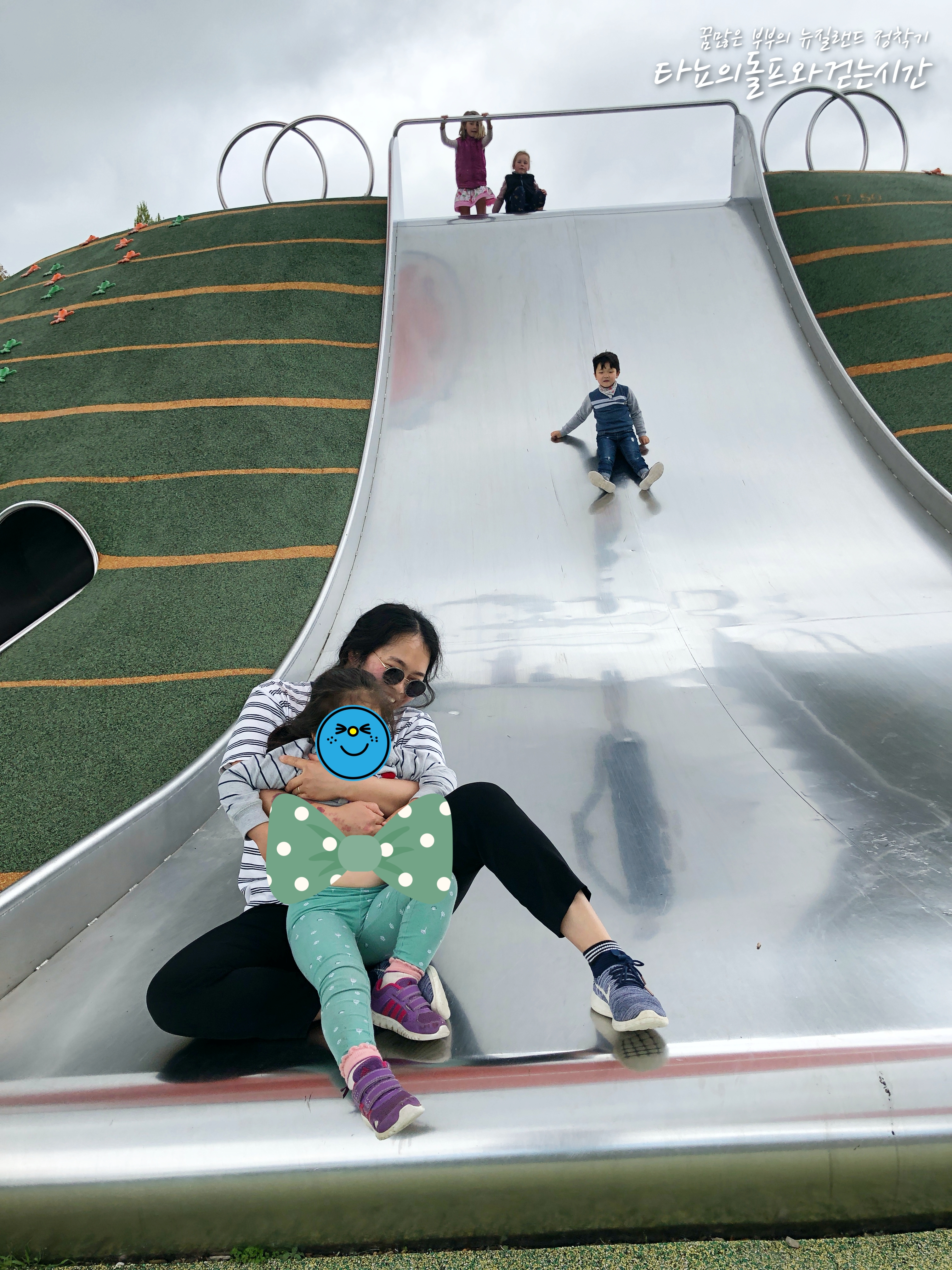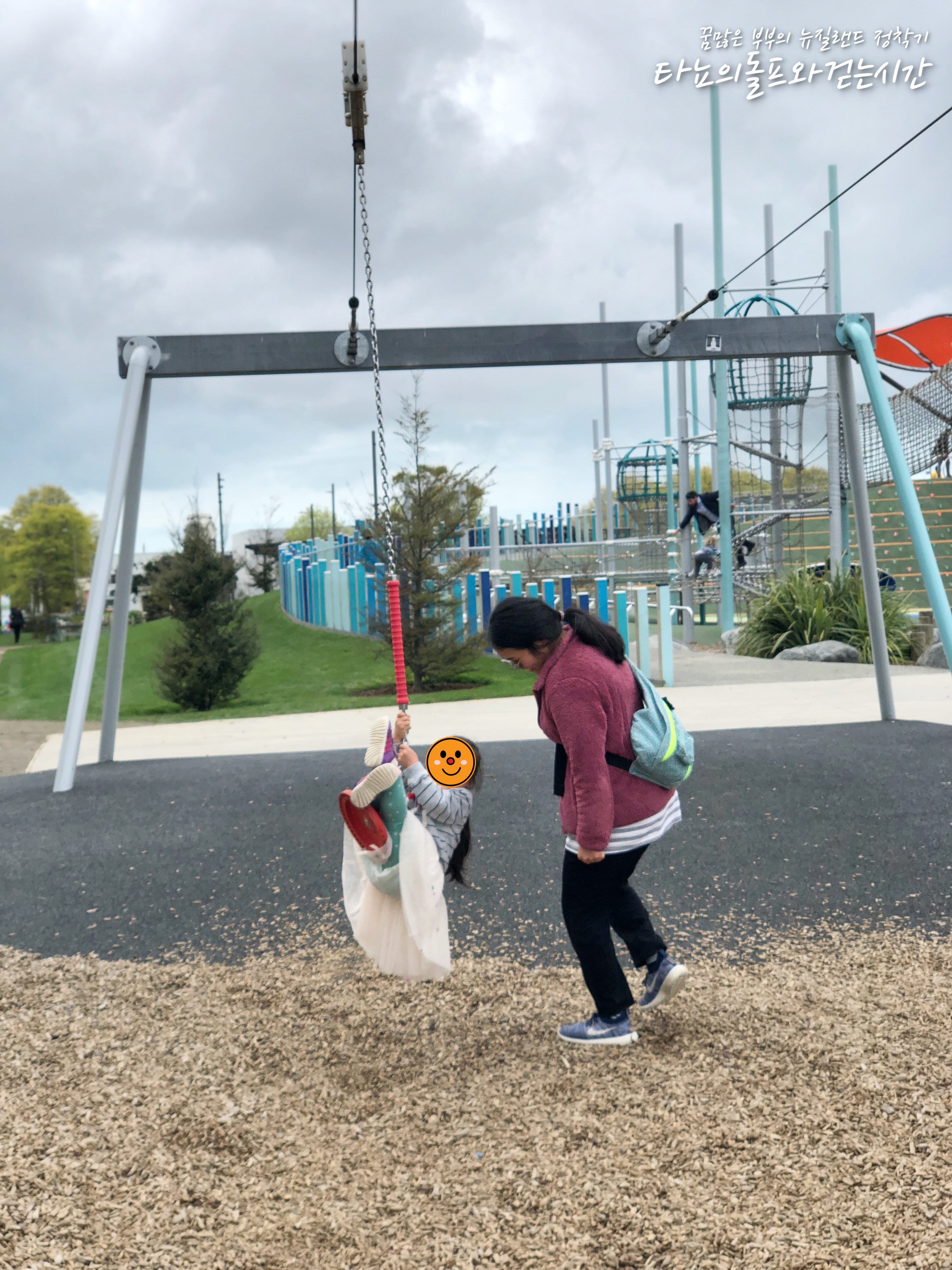 시티에 방문한 김에 크라이스트처치에서 가장 큰 놀이터에도 들렀어요. 날씨가 좋지 않아서 조금 걱정했지만 생각보다 잘 논 것 같아요. 거의 다 놀고 집에 가려고 하니 비가 쏟아지더라고요. 신설이라 확실히 시설이 좋습니다. 워낙 큰 놀이터라 가족이 함께 가면 정말 좋은 것 같아요. 여름에는 야외 물놀이장도 있어서 아이들이 정말 좋아하는 곳이에요. 뉴 리젠트 거리와 가까운 이 곳은 '마가렛 마히 놀이터'입니다.