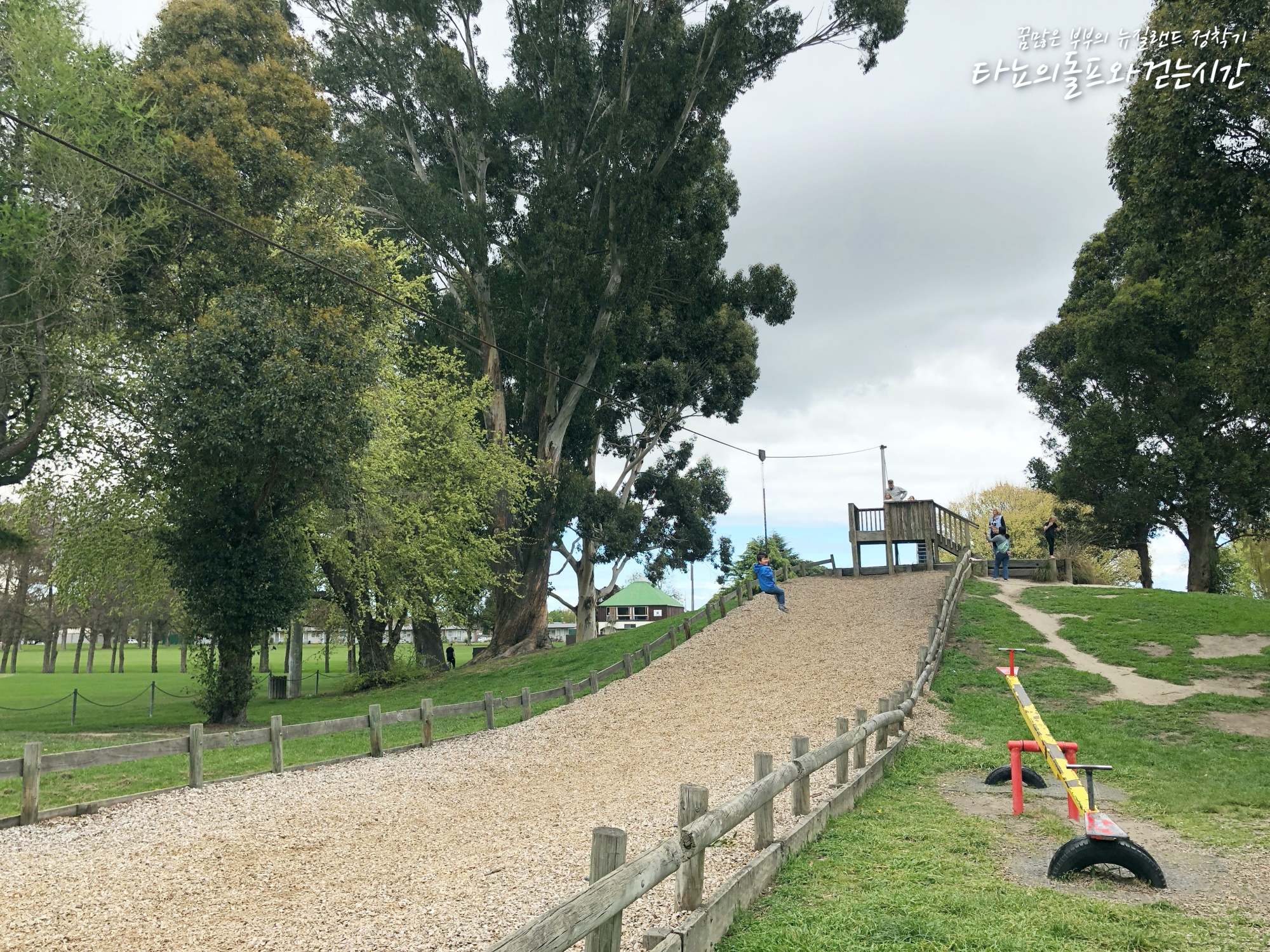 비숍데일 공원 놀이터에 있는 짚라인은 어른이 타도 정말 재밌을 만큼 높고 깁니다. 저도 정말 정말 좋아하는 짚라인이에요. 이 곳에 비하면 마가렛 마히에 있는 짚라인은 정말 시시하죠. 첫째 조카는 처음 뉴질랜드에 왔을 때 많이 타봐서 이 번에도 혼자 열심히 탔습니다. 치치에 오신다면 여러분들도 비숍데일 짚라인 꼭 타보시길