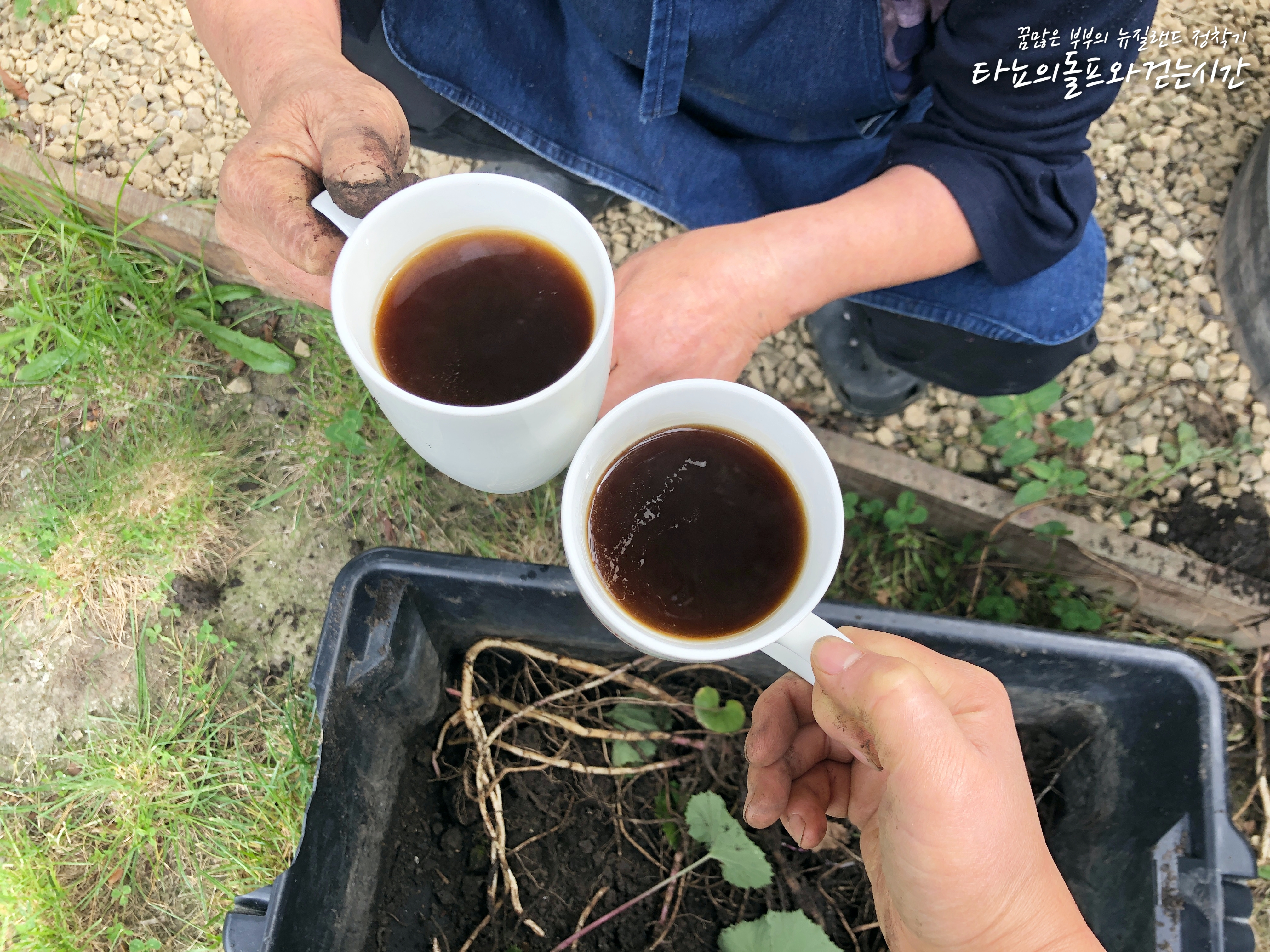 엄마가 좋아하시는 커피 한 잔 내려서 정원에서 한 잔 했지요. 이런 일상의 시간이 참 소중하다는 것을 알면서도 늘 놓치는 것 같네요. [ 머위는 아무데나 막 심어도 잘 번져. 뿌리가 잘 번지니까 이렇게 여기다가 막 심어둬 ] 엄마는 막내딸에게 이런 저런 텃밭 정보를 주셨습니다.