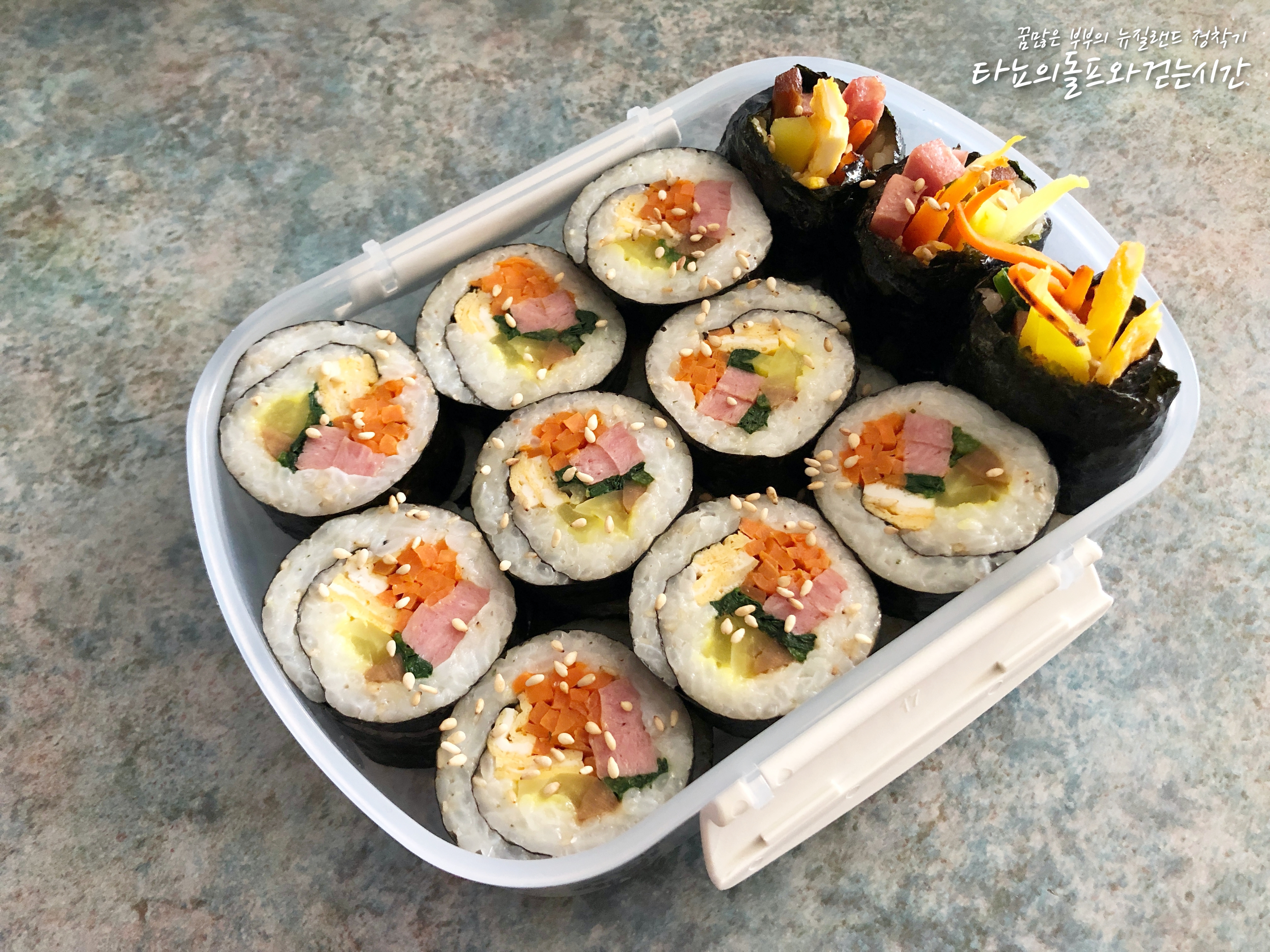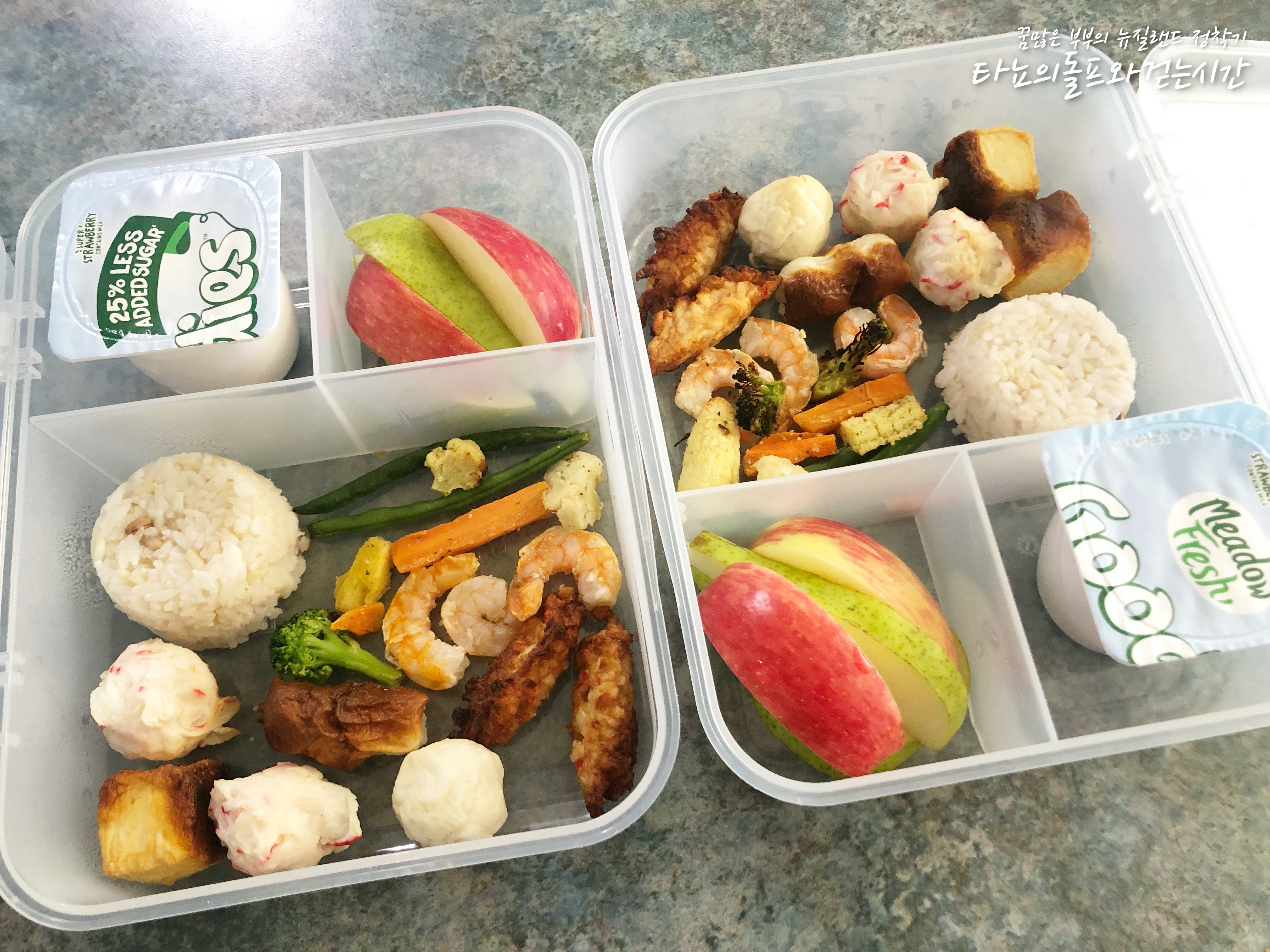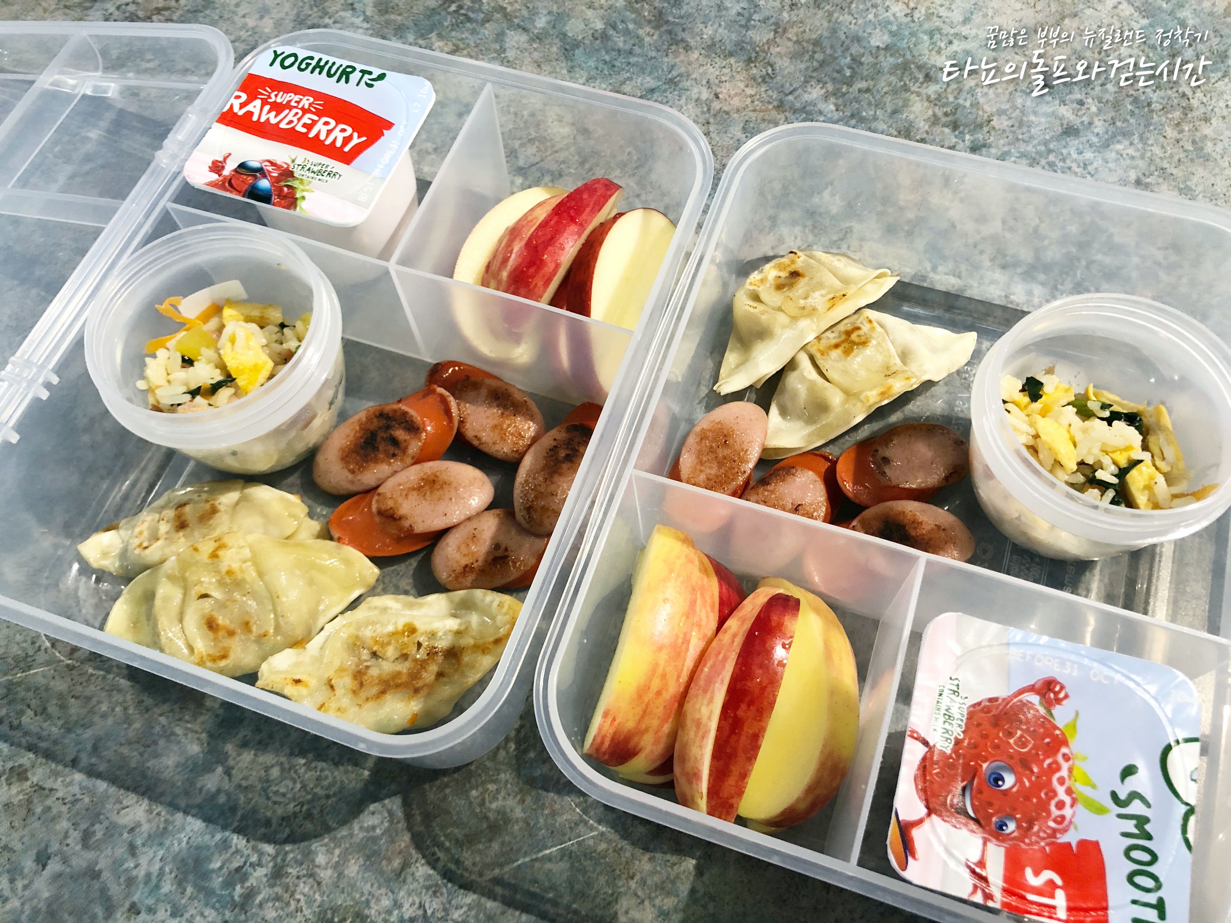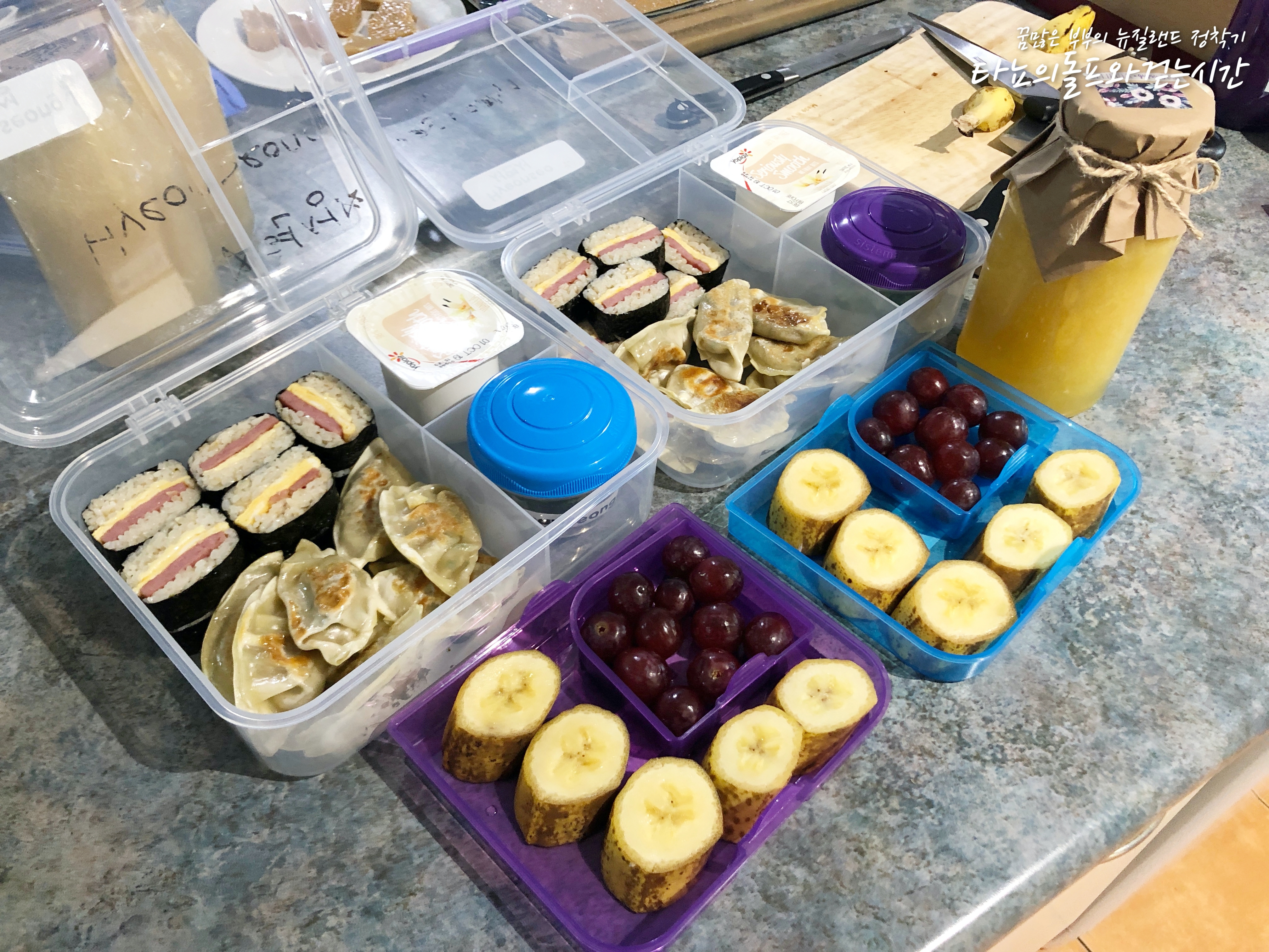 조카들이 왔던 2달 동안 제가 꼭 해야하는 일이 몇가지 있었어요. 그 중에서 가장 중요했던 것 두 가지가 아이들 등하원 시키는 것과 도시락 준비하는 것이었습니다. 오늘은 지난 2달 동안 아이들이 어떤 도시락을 가지고 뉴질랜드 현지의 프리스쿨에 갔었는지 적어봅니다.